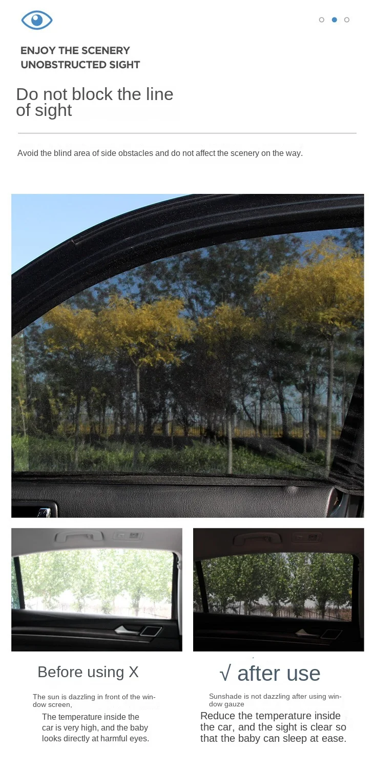 Bullet Points:1、Block the Sun: Car window shades help to block sunlight, reduce the indoor temperature, and protect the back seat baby or rear seat passengers fro