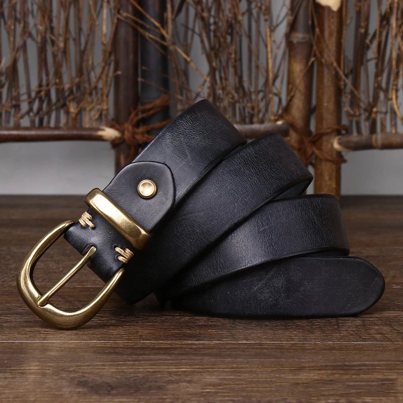 Choose Options Quick view 3.3CM Thick Pure Cowhide Copper Buckle Genuine Leather Casual Jeans Belt Men High Quality Retro Luxury Brand Male Strap Cintos $30.48