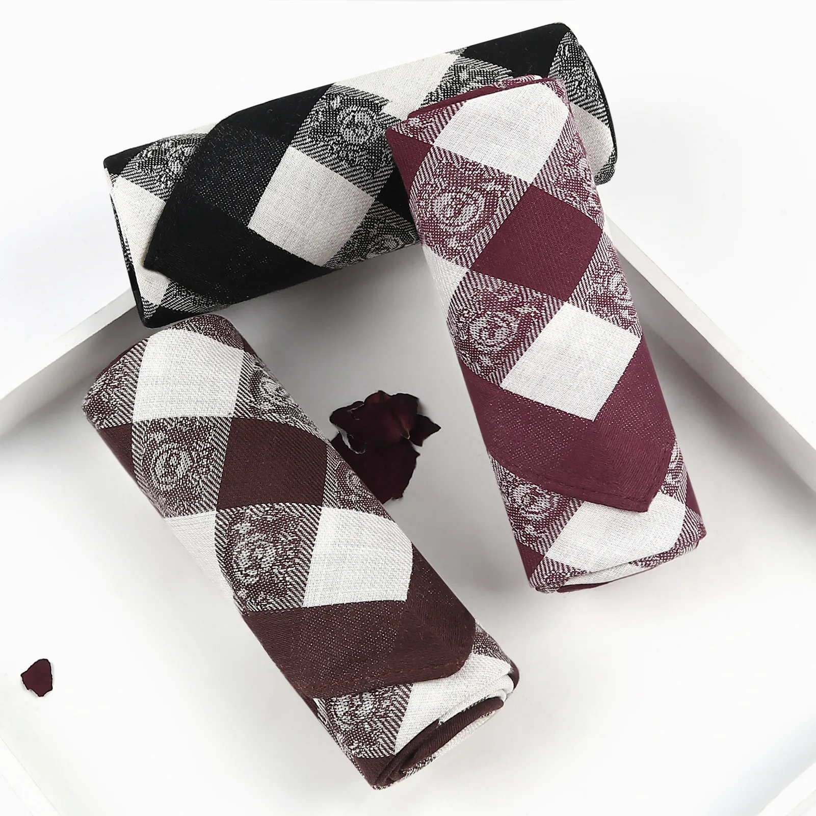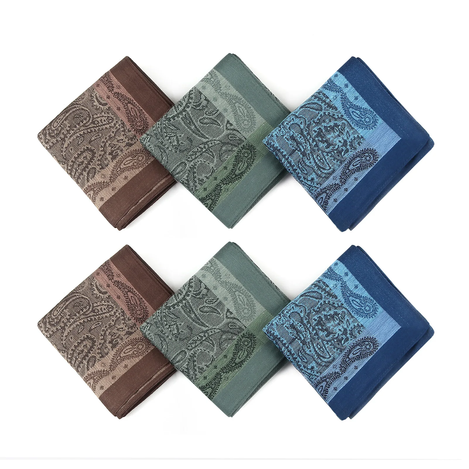 3/6PCs Fashion Square Handkerchief For Men Gentlemen Vintage Jacquard Grid Pocket Cotton Towel For Business Wedding Party