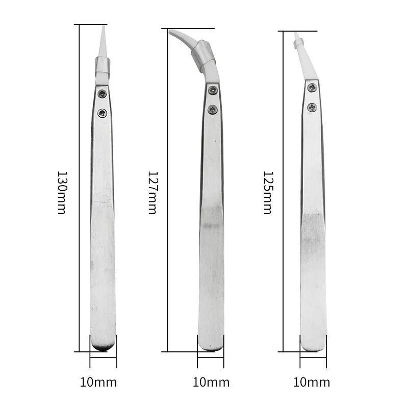 List Packing: 3-piece set of tweezers (straight tip, small elbow, big elbow)