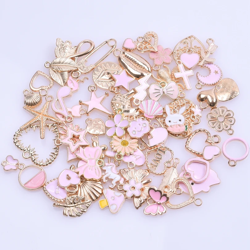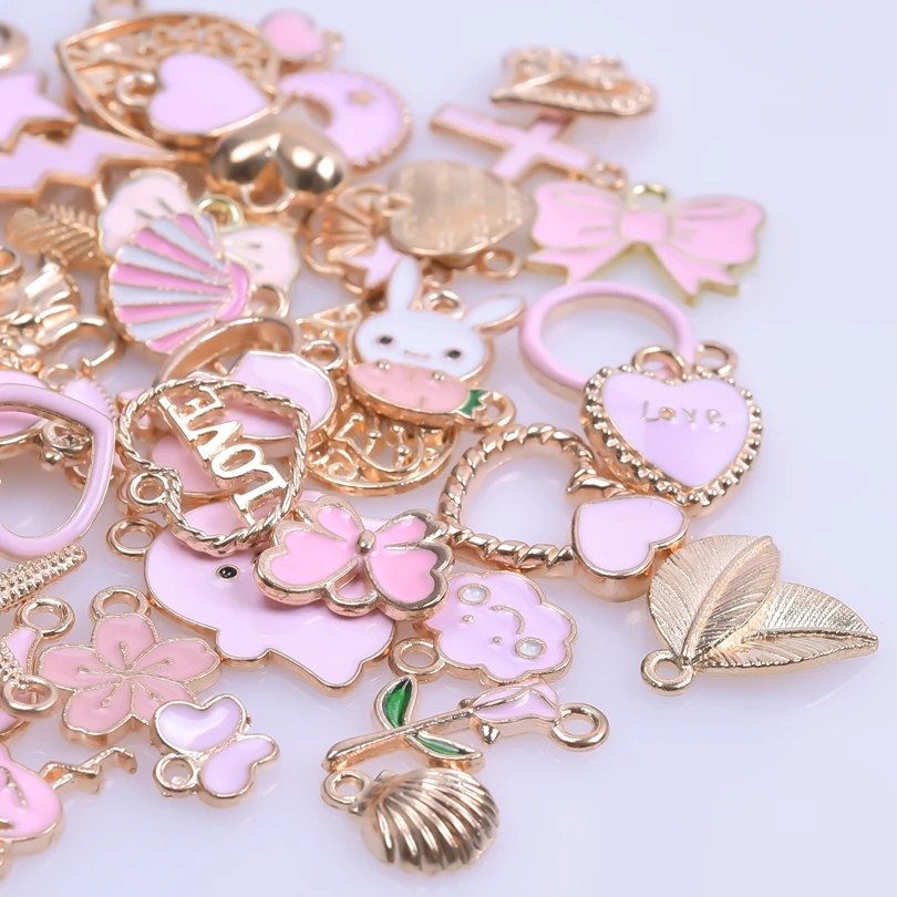 • 30/50/100PCS Mix Enamel Charms Rose Flower Pendant Alloy Tai Chi Sign Accessories DIY Making Fruit Star Material Jewelry Bulk