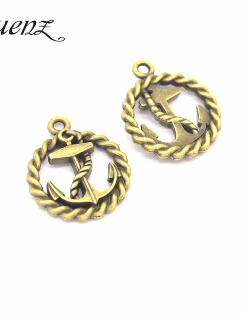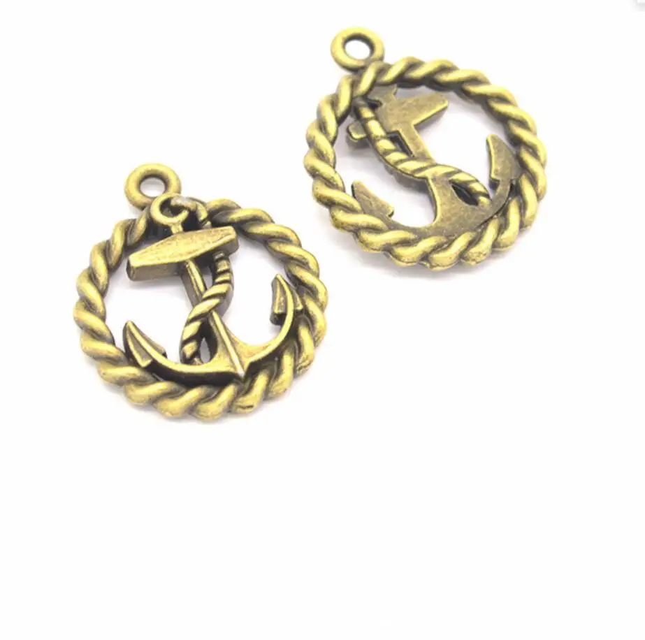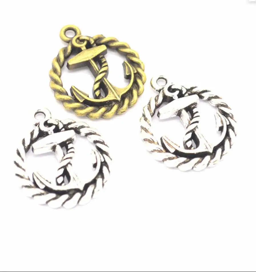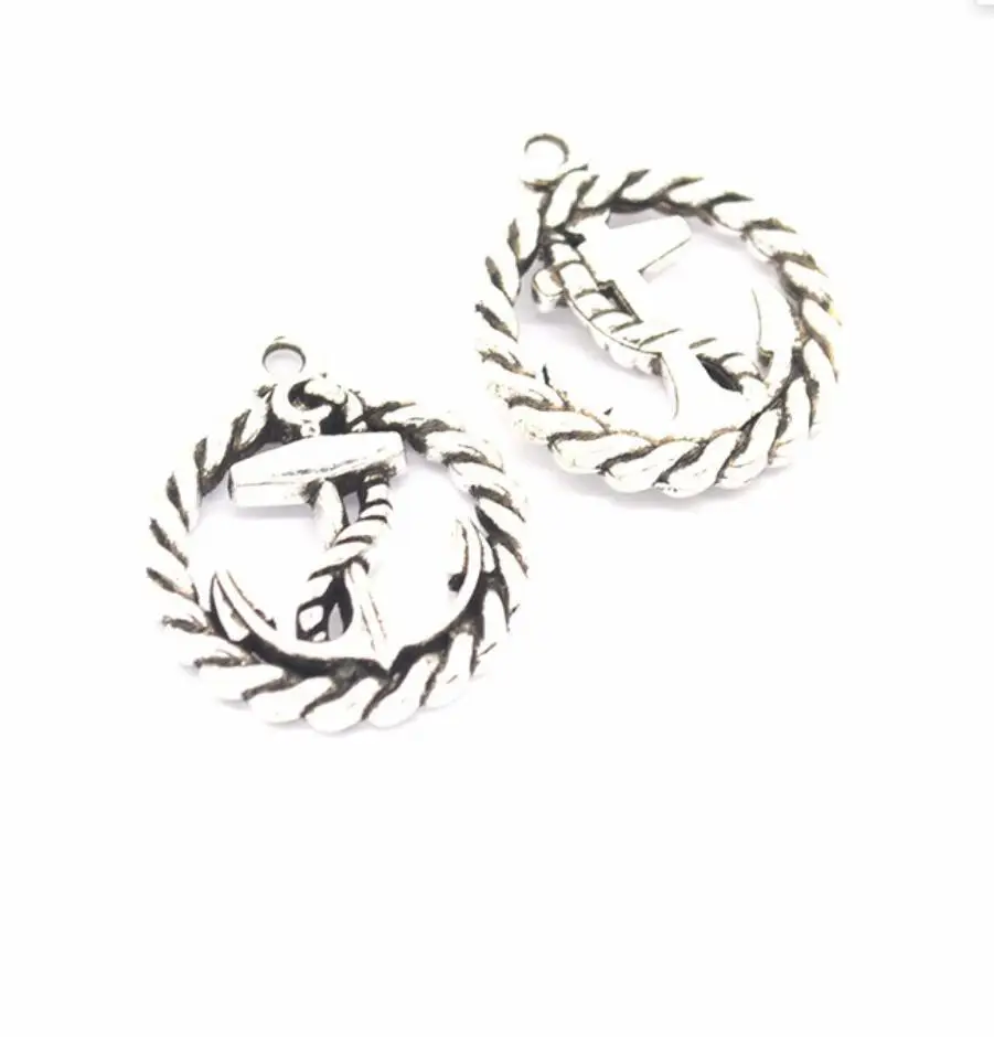 30pcs 26*22mmHollow Sailor Anchor Tag Alloy Pendant Retro Bracelet Earring Accessories DIY Charms Jewelry Crafts Making F0383
