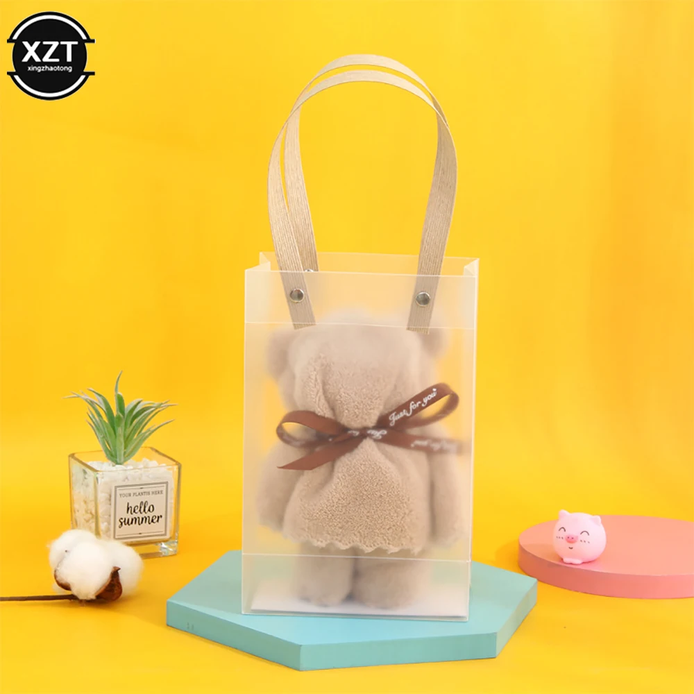 Dear buyer: this 30*30cm towel does not include the gift bag in the picture.Our bear towels are packaged in ordinary transparent bags by default. If you mind the gift bag,please be cautious, If you need this kind of bear towels gift bag on the picture, please click the link to buy, thank you!