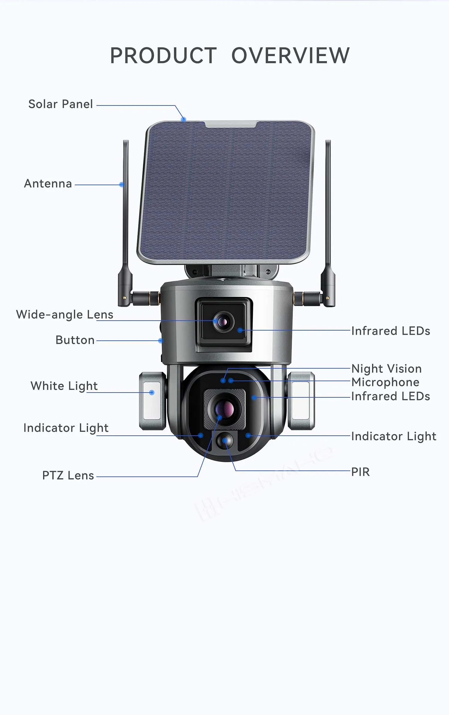 *This security camera comes with 6W solar panel, on sunny days, both the solar panel and battery can supply power to the security camera
