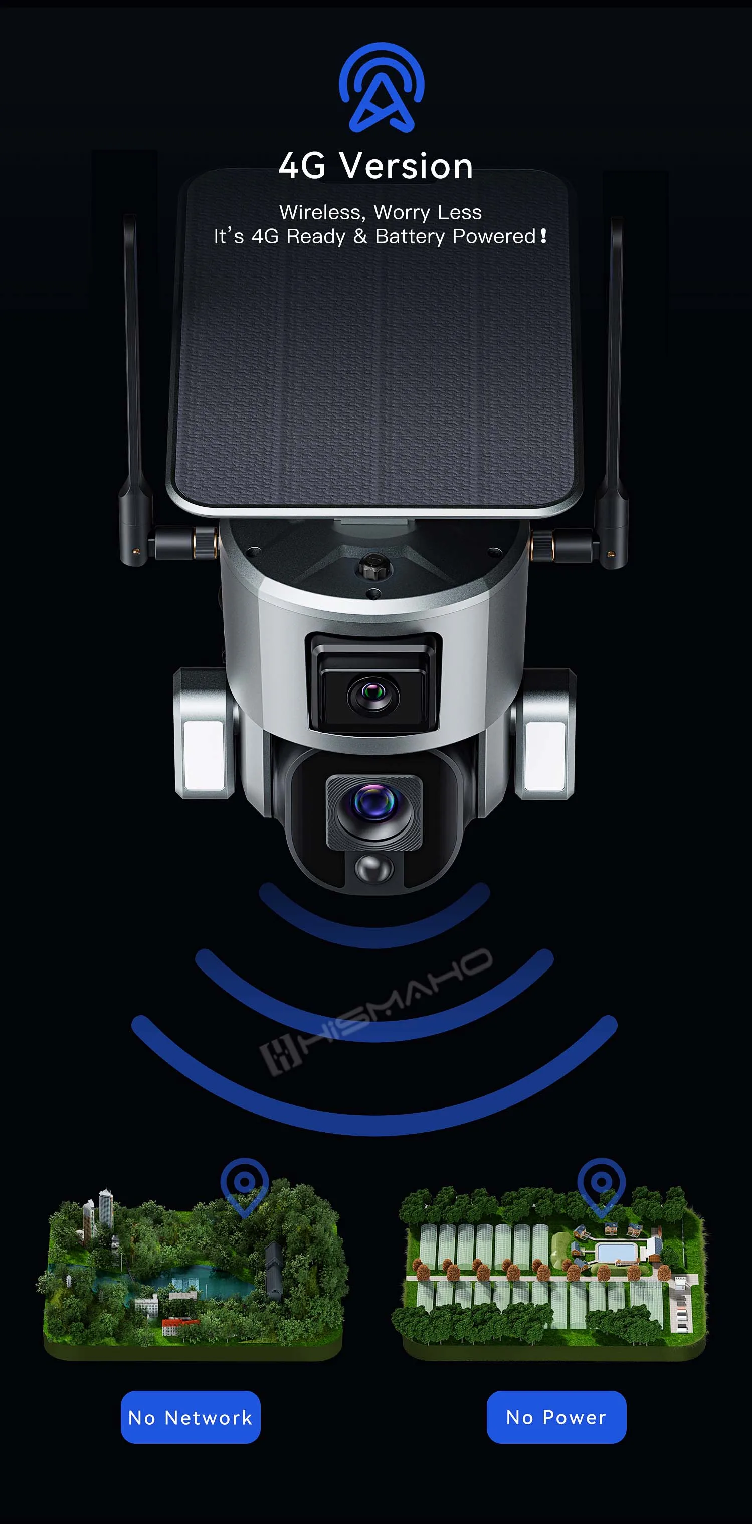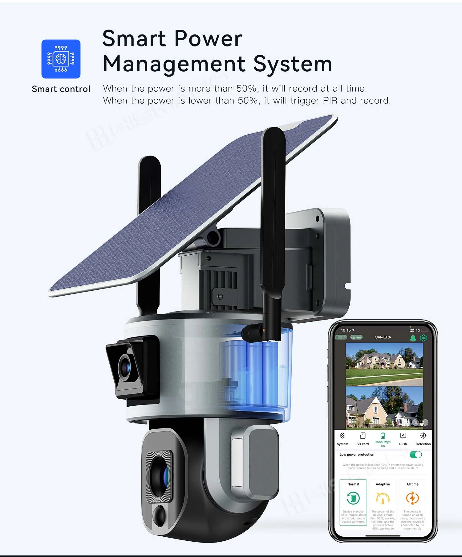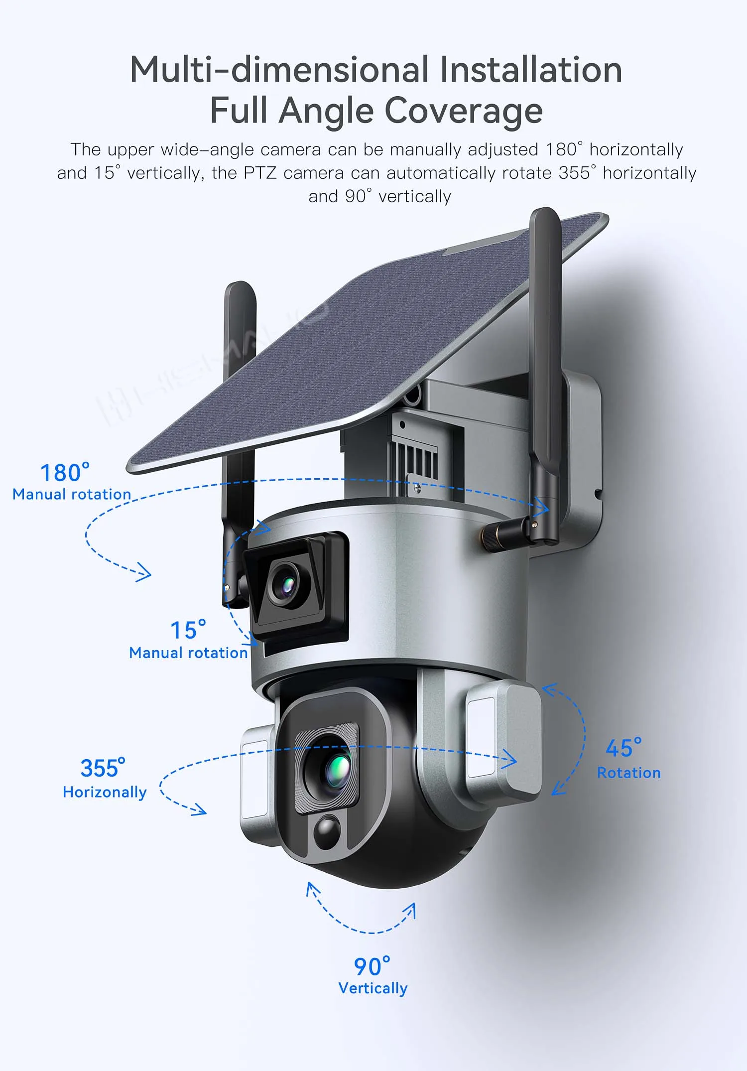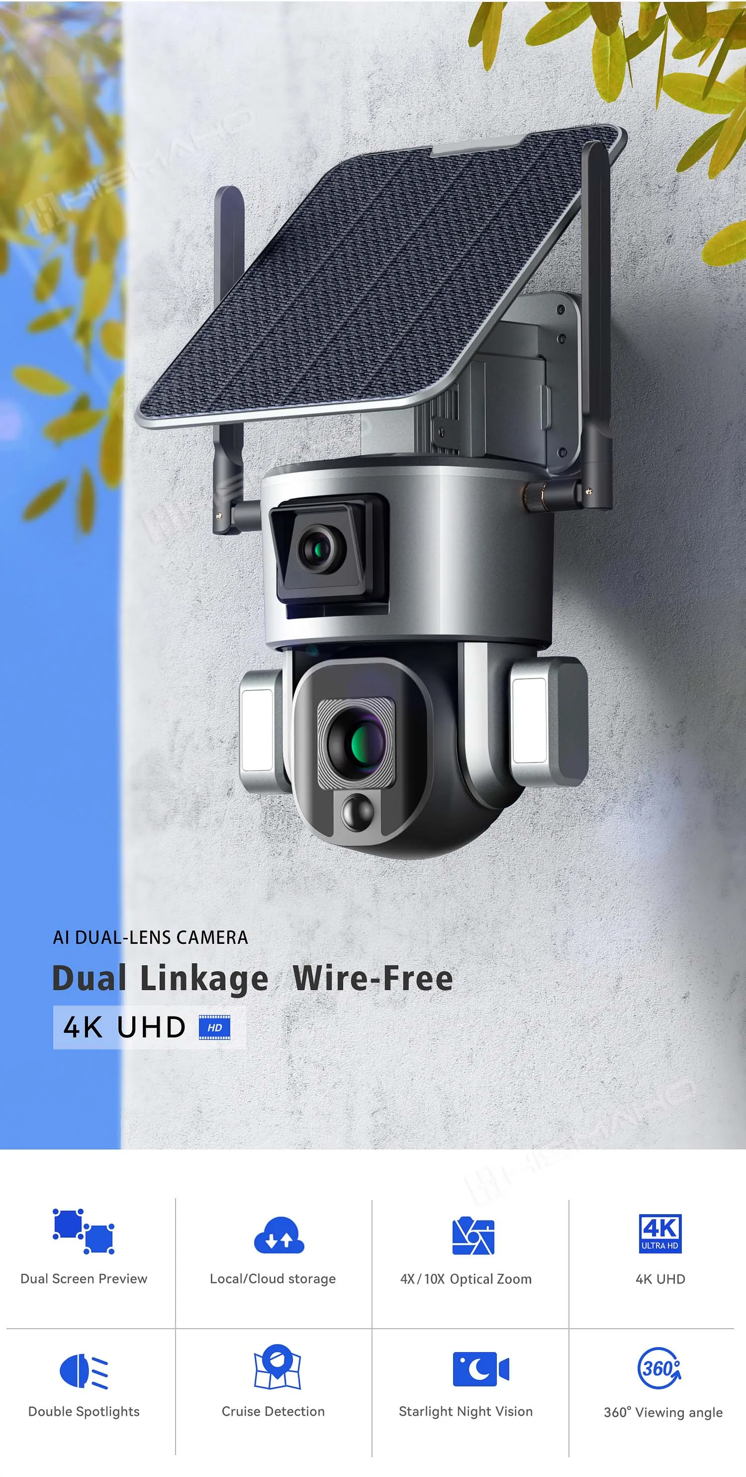 4K 8MP Dual Lens Solar Camera 4G Sim Card 10X Optical Zoom Wireless WIFI Video Surveillance Security Protection CCTV IP Camera
