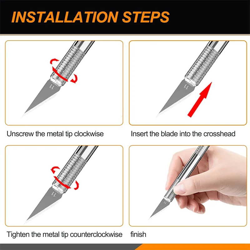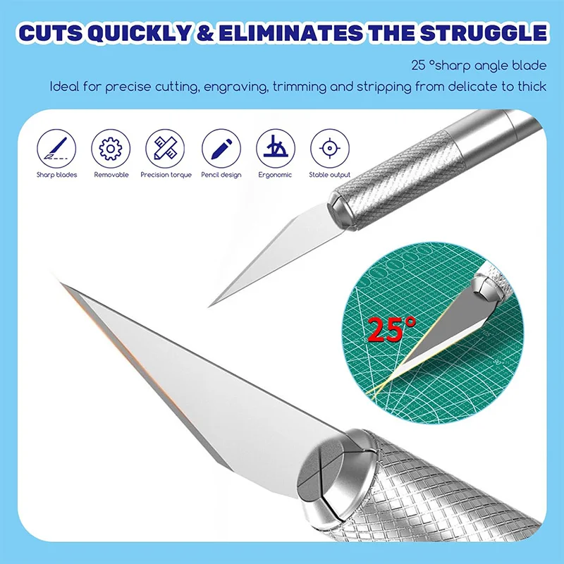 3. Knife with lightweight aluminum handle allows for a comfortable grip and exact cut, Safe and easy to cut the vinyl into different size and shapes.