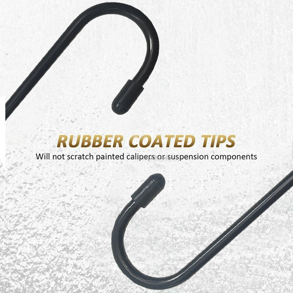 【Rubber tips】each brake caliper hanger features a rubber coated tip at each end of the hook, which can effectively prevent the scratching of your painted suspension components, hold your brake caliper safely, and reducing the possible damage to brake hoses.