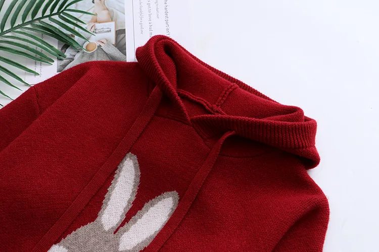 Choose Options Quick view 4xl Autumn Plus Size Jumper Woman Clothing LOOSE Knitted Pullover Fashion Dobby Cartoon Hat Rabbit Hooded Curve Sweater Winter $47.58