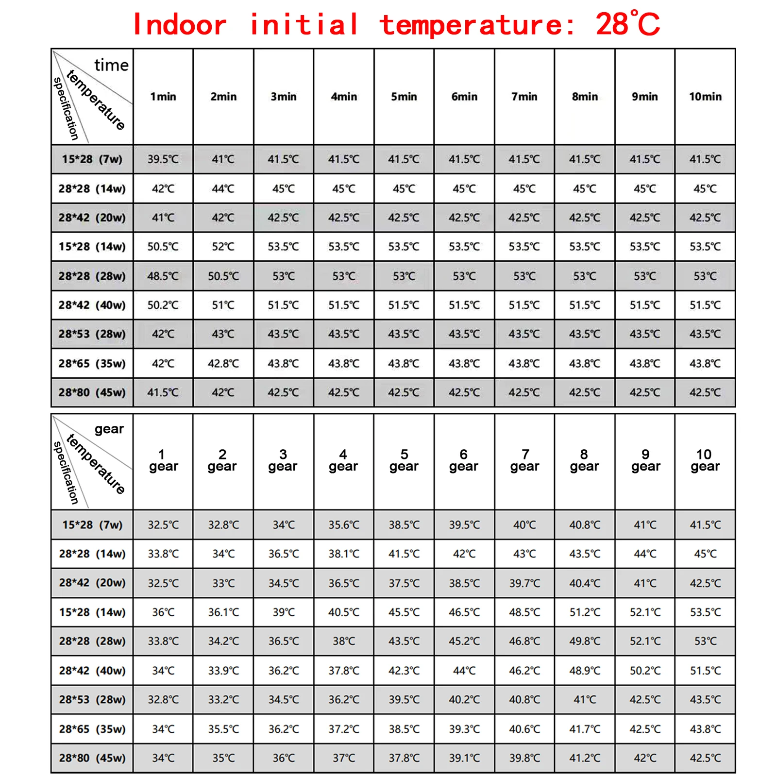 - Equipped with temperature controller, provides a suit and quick warm temperature, adjustable temperature ranged 0-53 degree (max can reach about 53.5℃ different environment, the temperature a little difference).