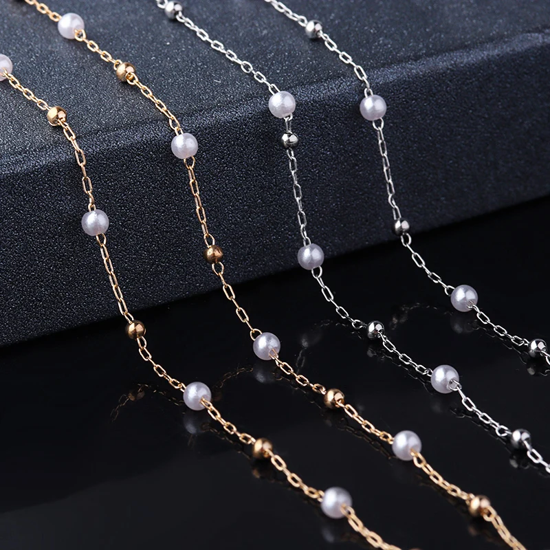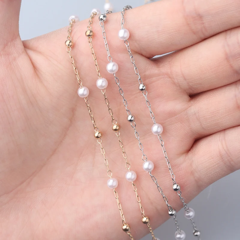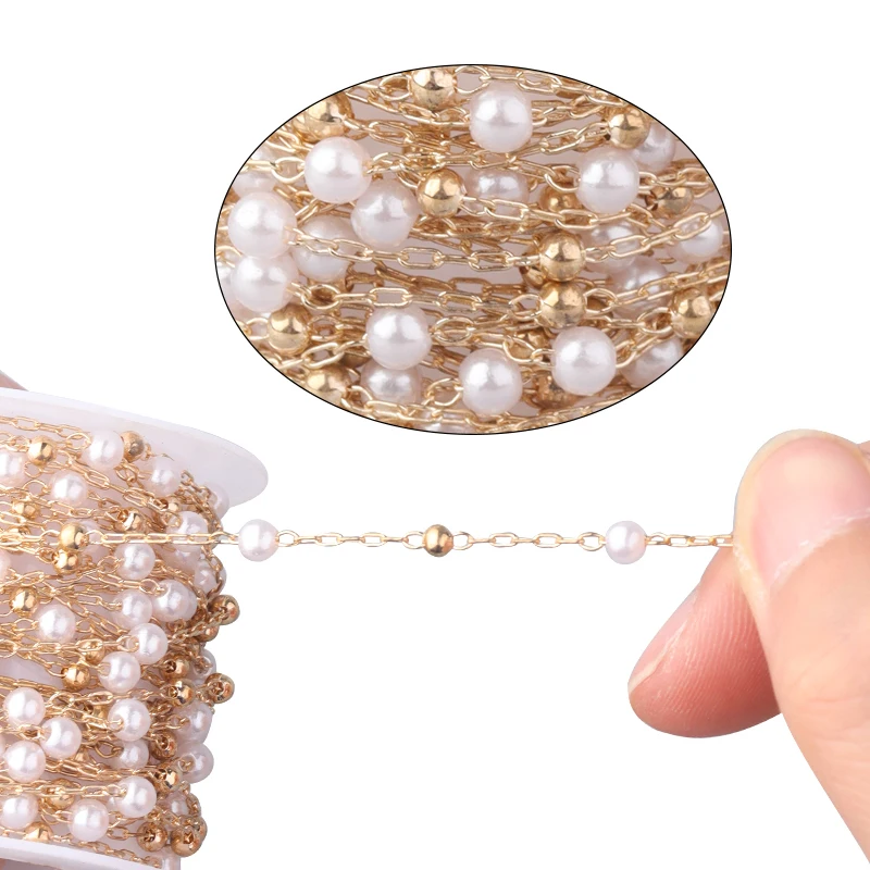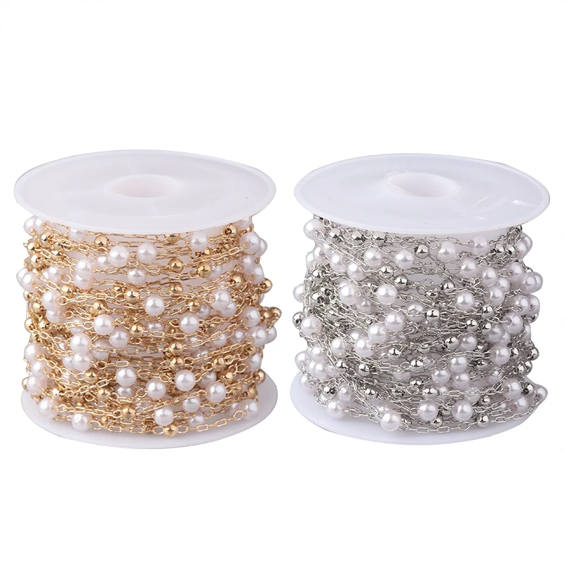 5 yards/roll Imitation Pearl Chains Beaded Link Chain for Necklace Bracelet DIY Craft Jewelry Making Clothing Accessories