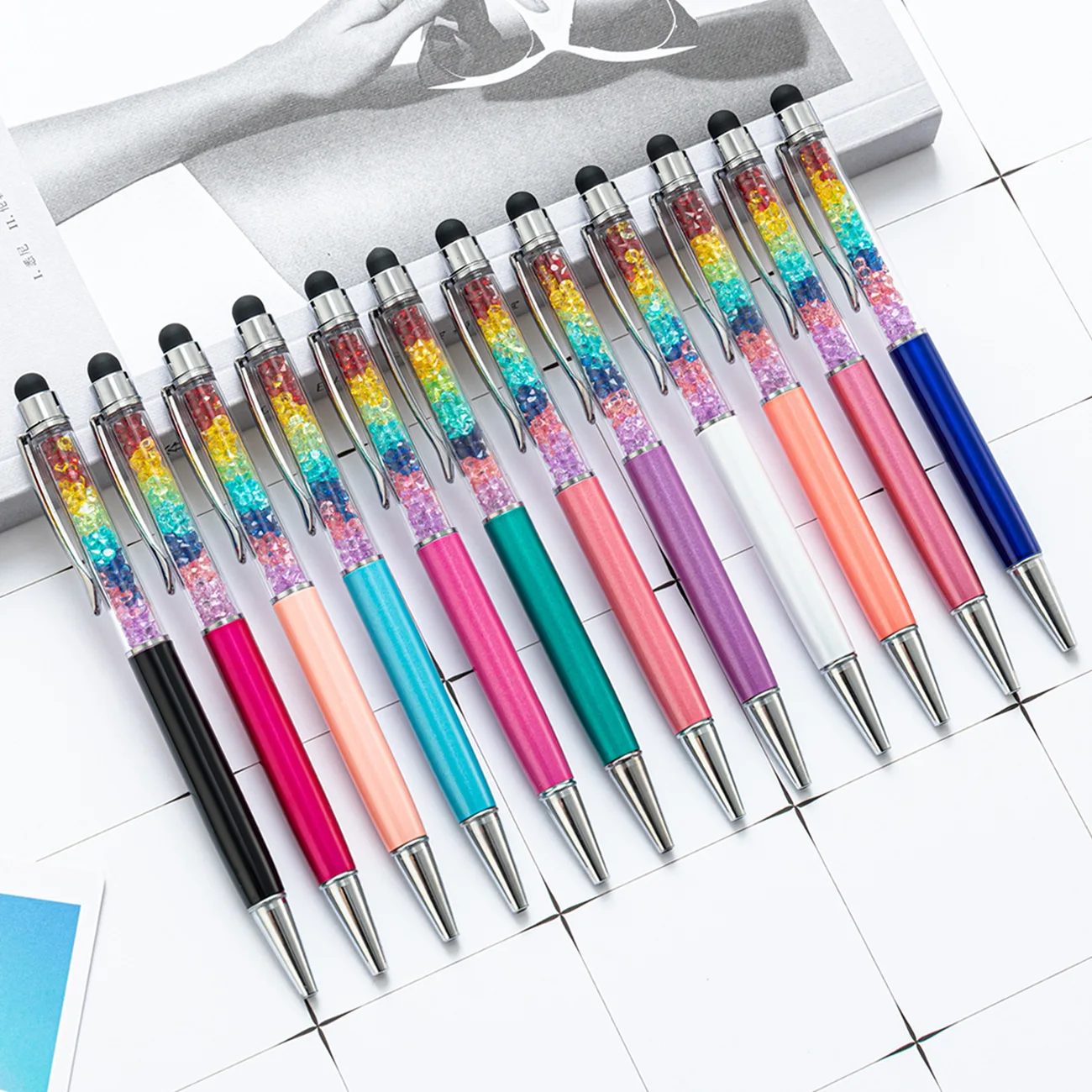 Diamond Crystal Ballpoint Pen Metal Creative Stylus Touch for Students Writing Stationery Office School Gift