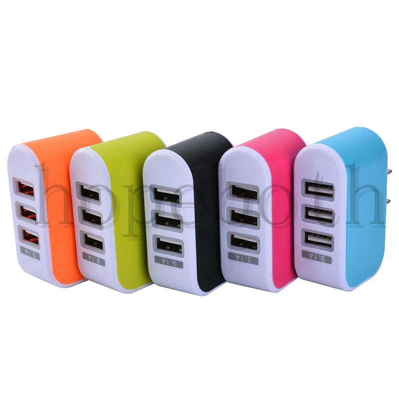 Colorful 5V 3A US EU Plug 3 USB Ports Triple USB Home Wall Charger AC Power Adapter For iPhone Samsung S 6 7 8 X Chargers