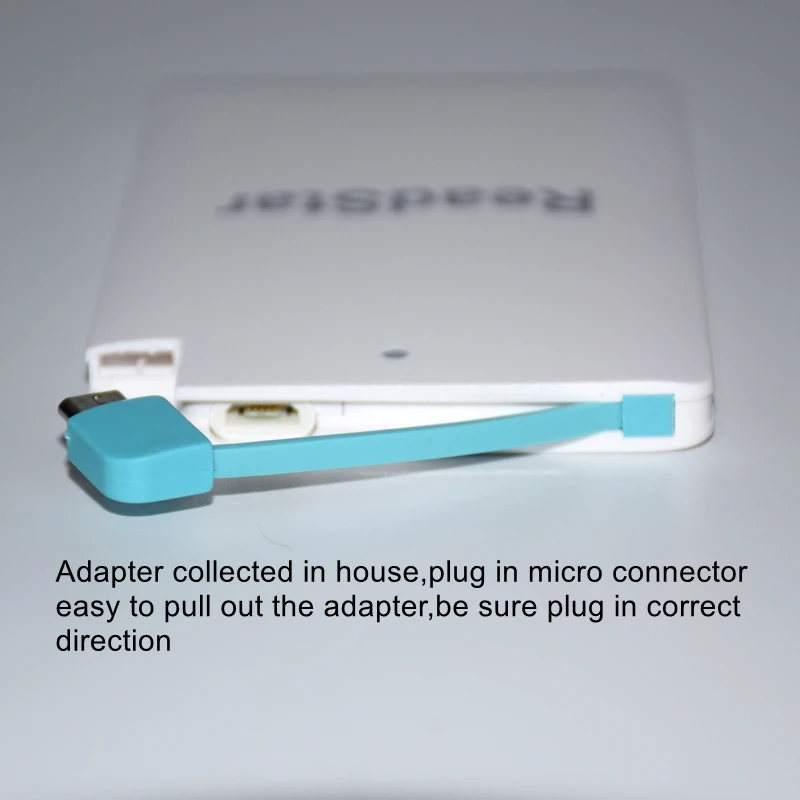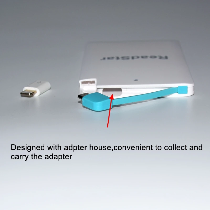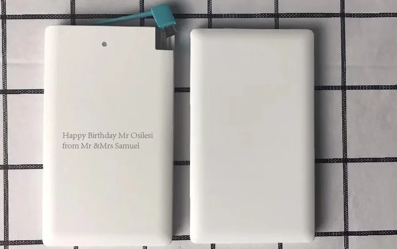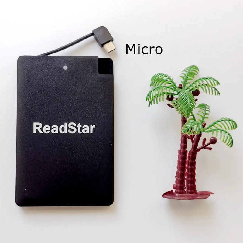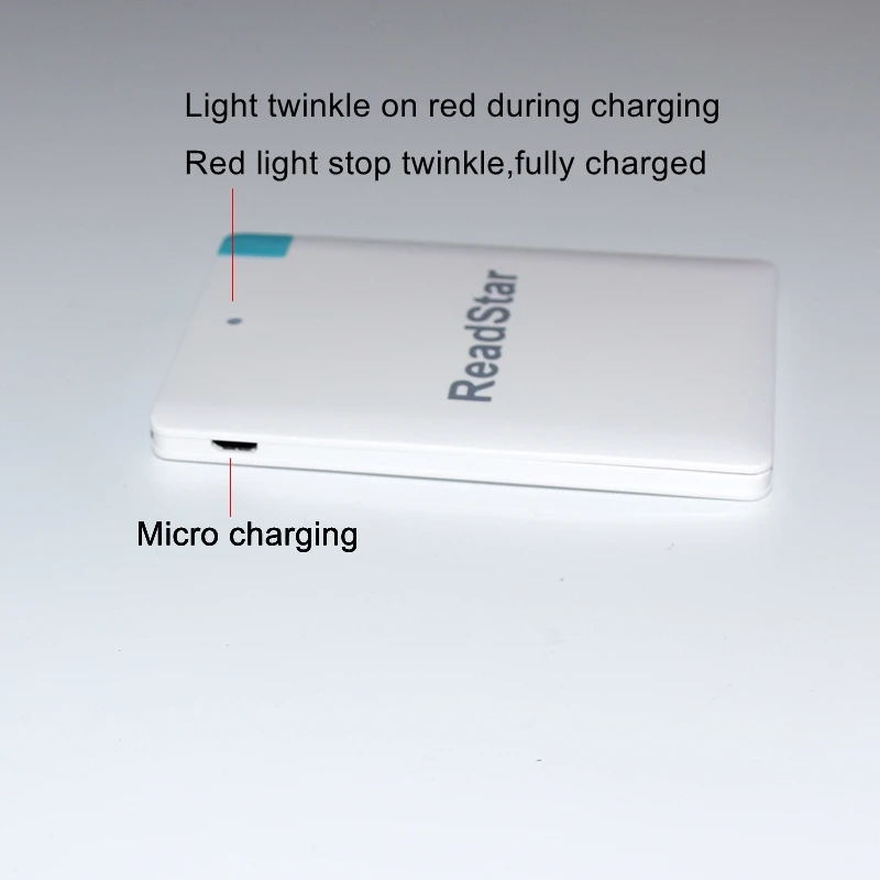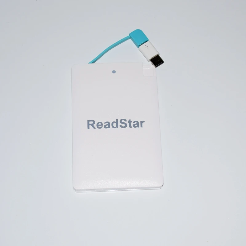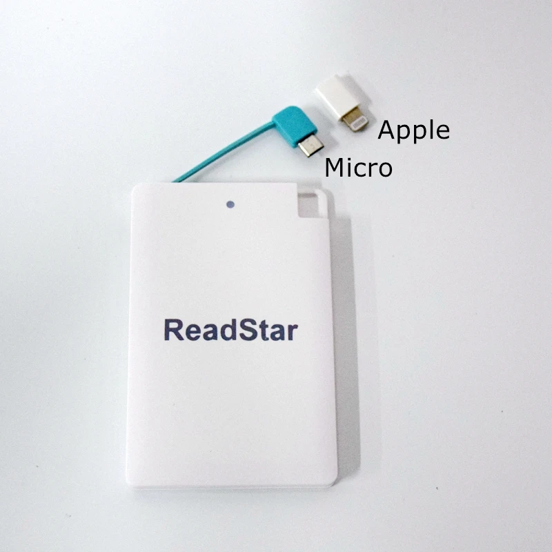 Description Description ReadStar Credit card Mini Power bankCapacity:2500mAhSize:96x62x8.3mmNet weight:about 61gAdapter:Micro USB(add Type-C & Apple adapter available)Color:White/BlackCustomize Logo available(Min. Quantity 50 Pieces) View AllClose