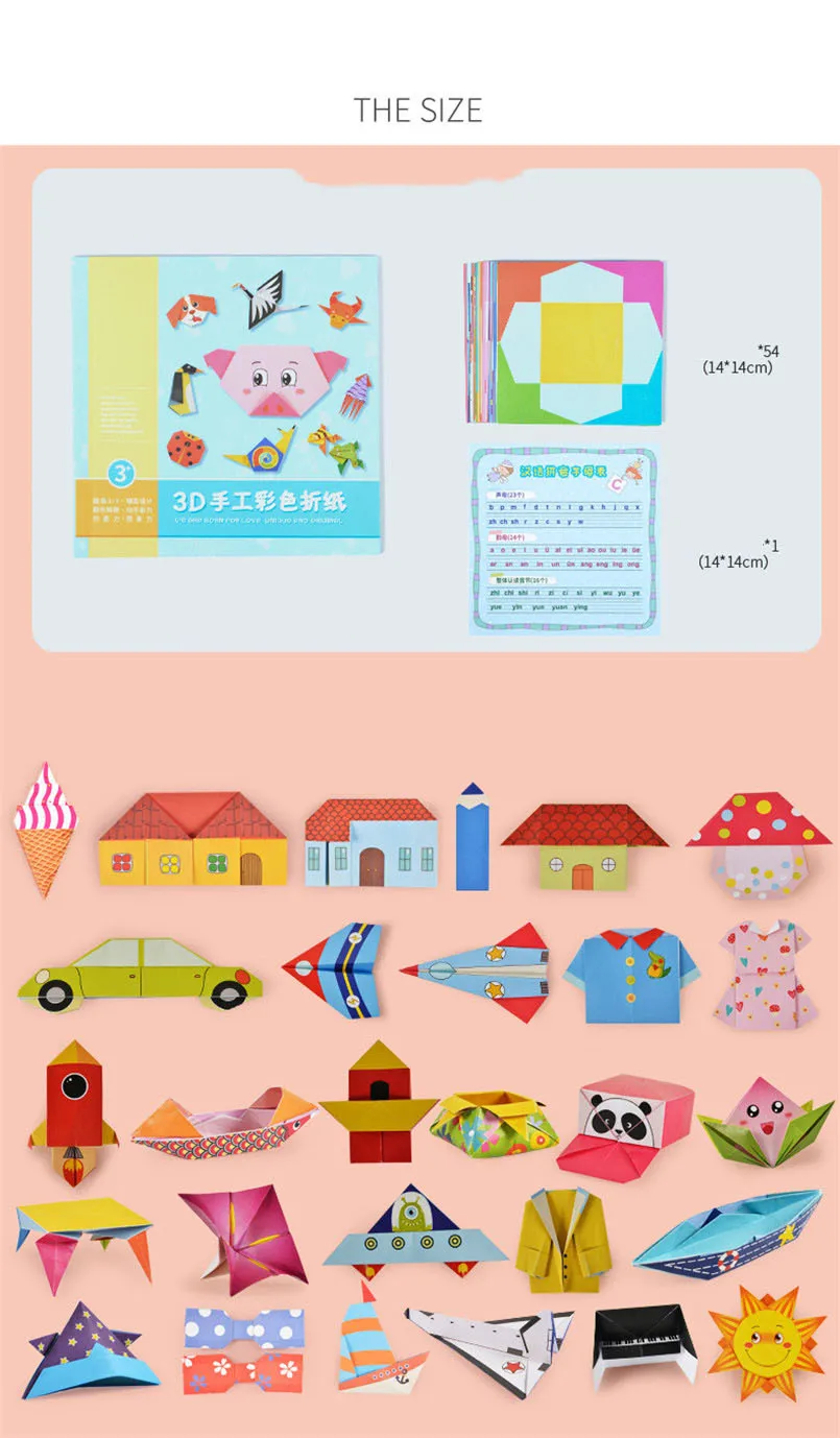 4. Products include: 54pcs/Set origami (opp bags packing), include 27 shapes, one shape has 2pcs