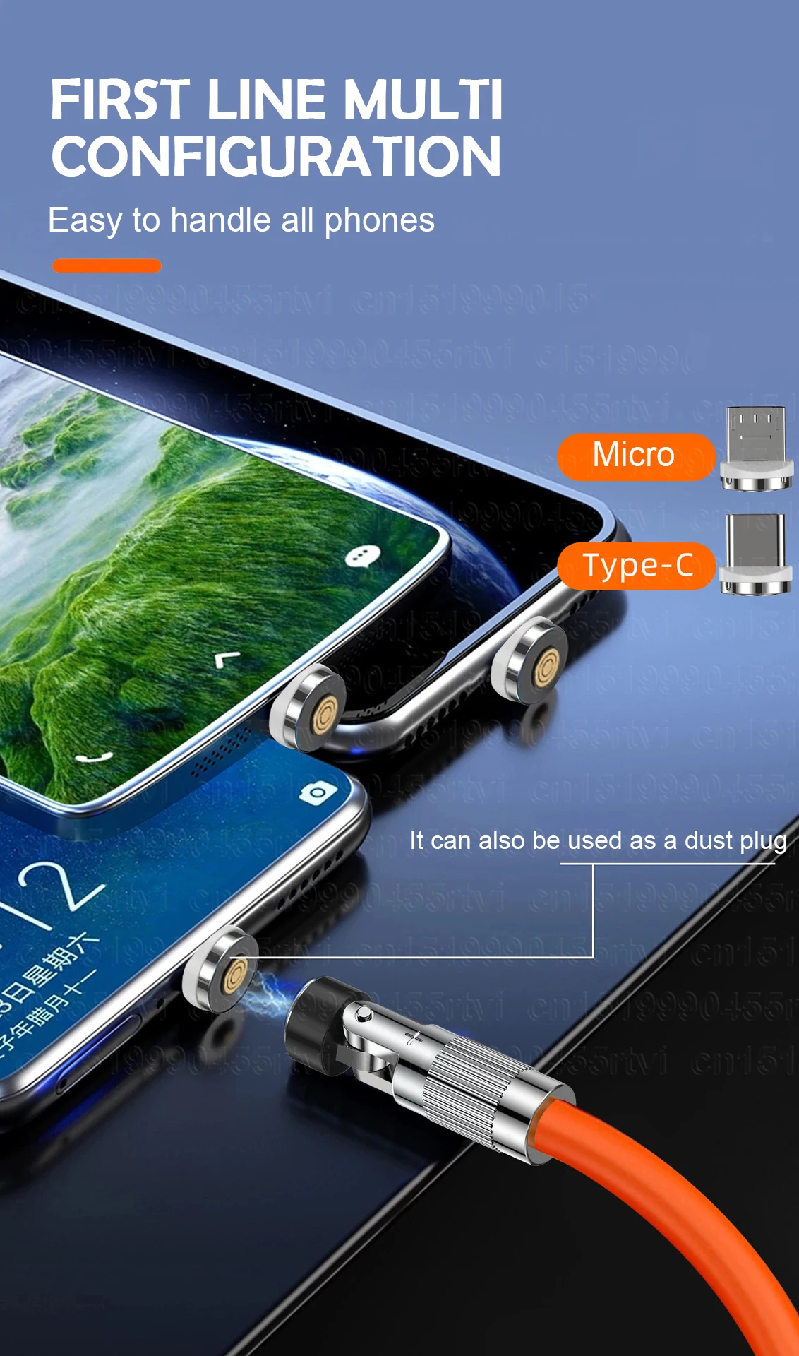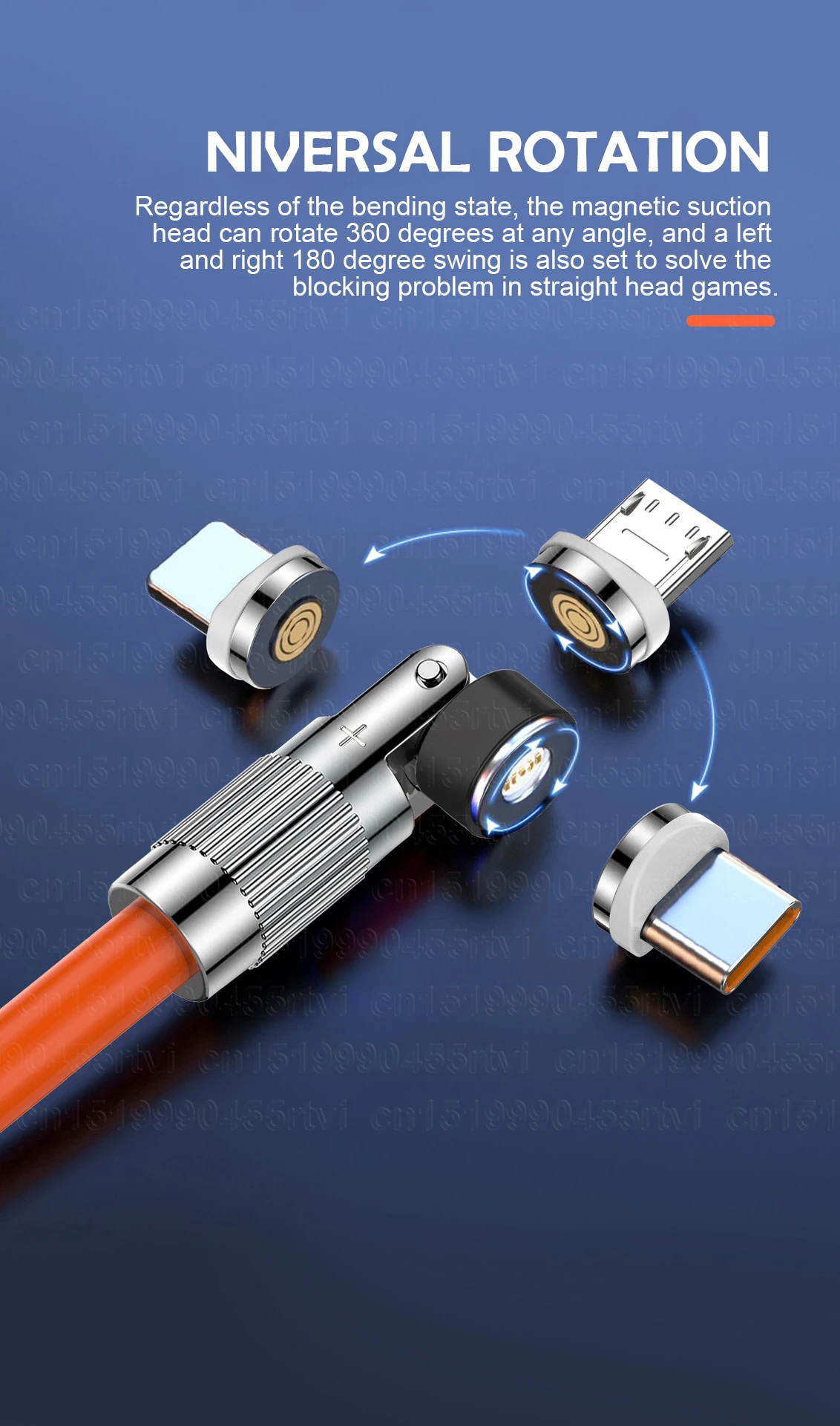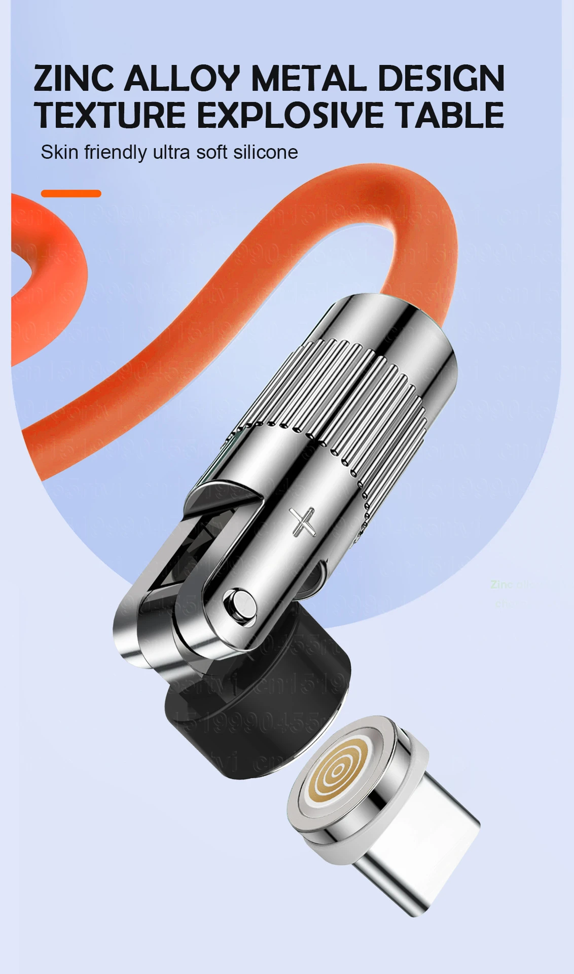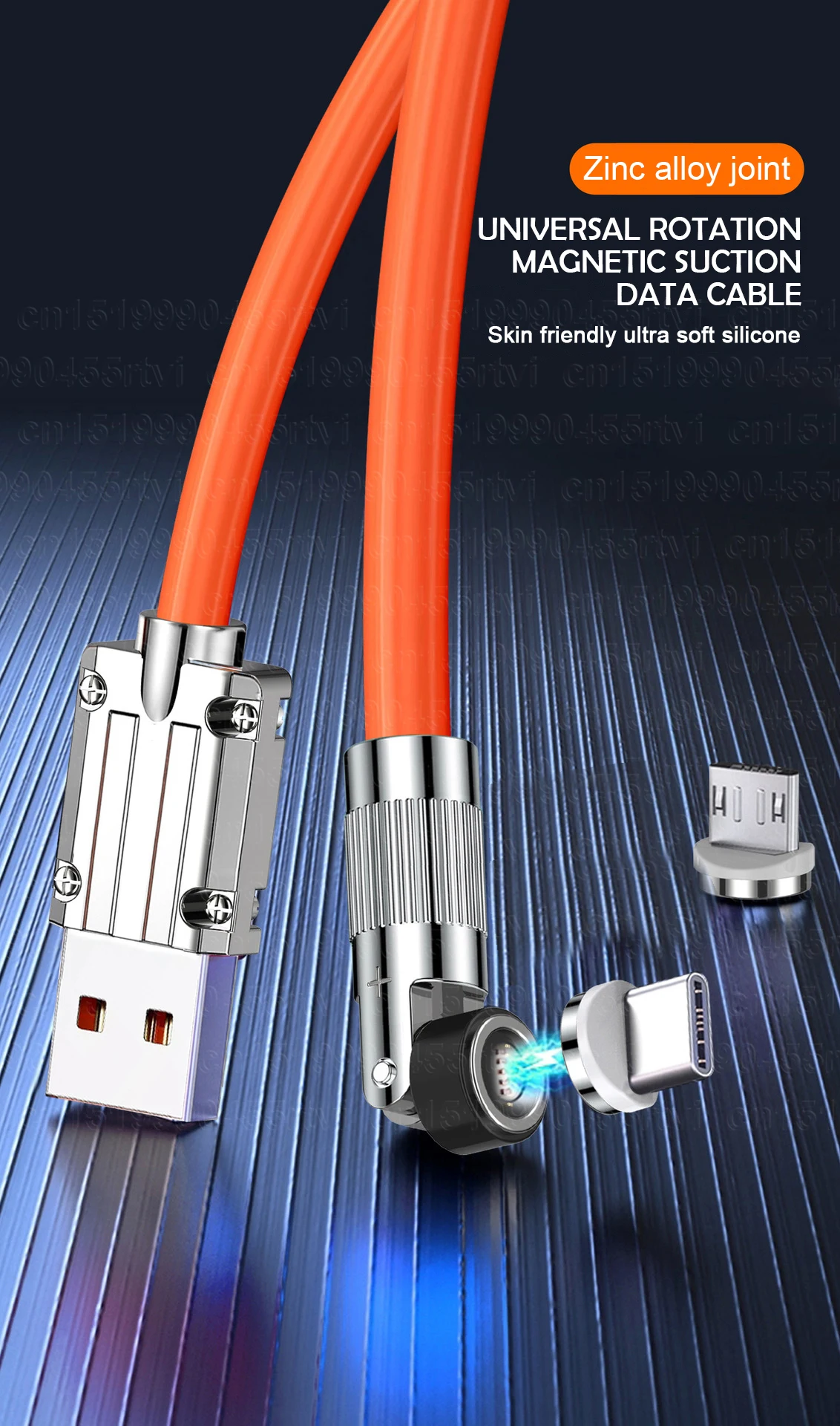 540 Rotate Magnetic Cable 6A Fast Charging Magnet Charger USB Type C Micro 8-Pin Cable Mobile Phone Wire Cord For Huawei Xiaomi