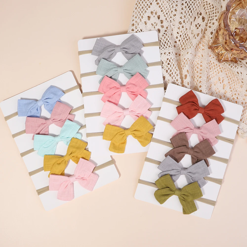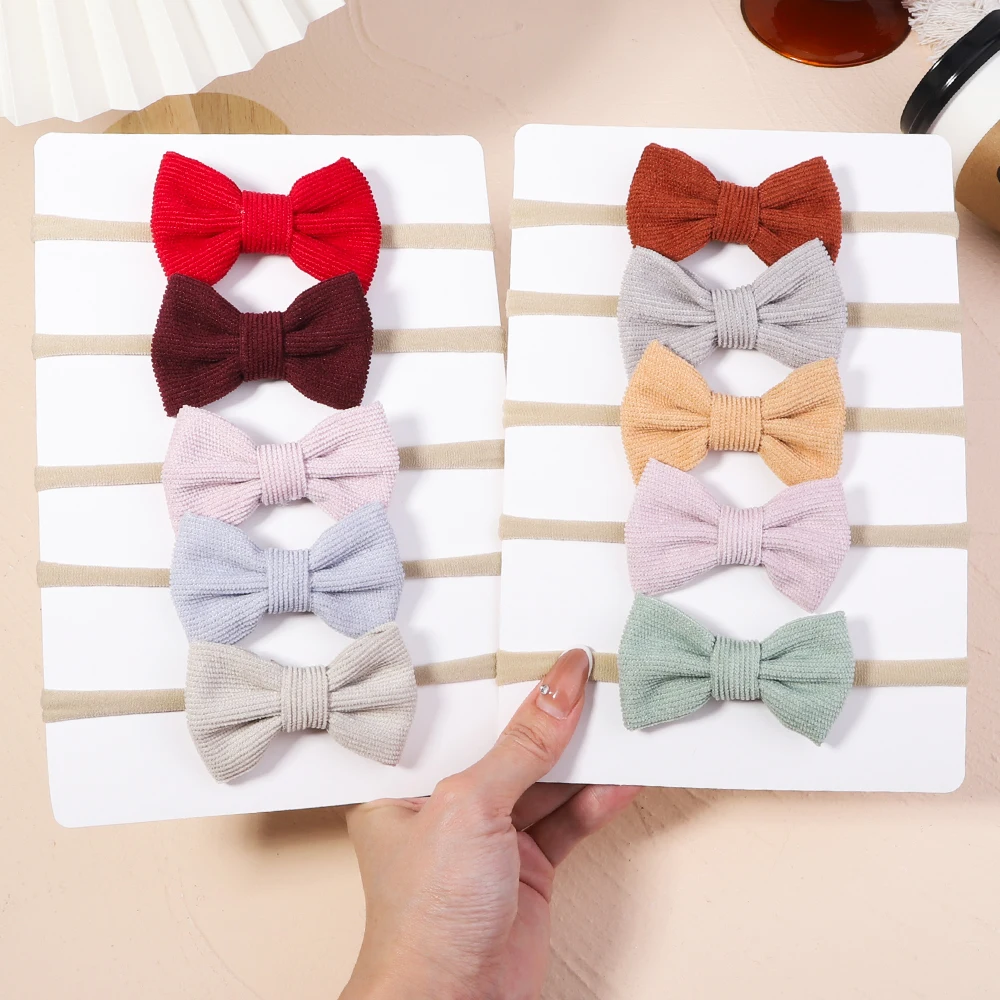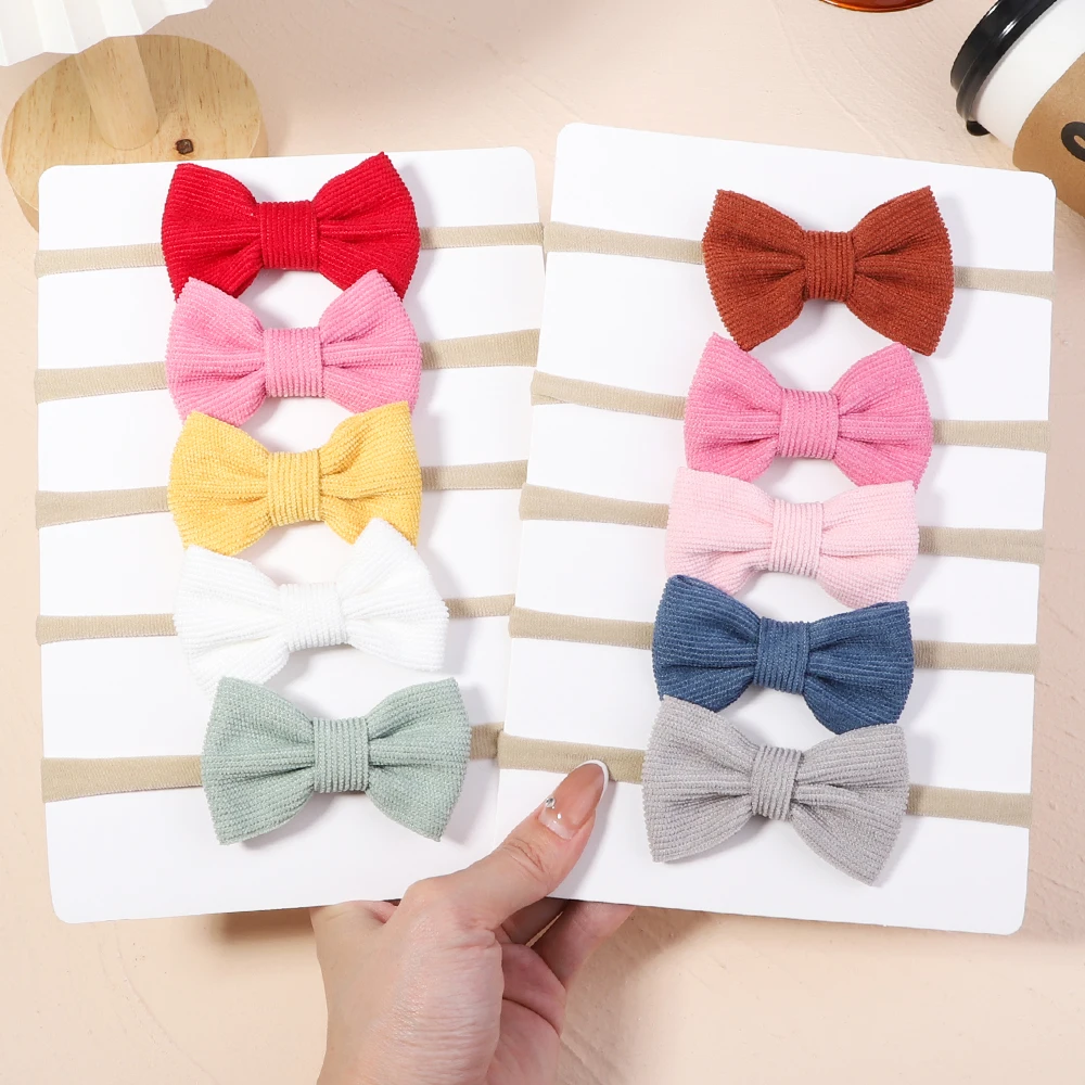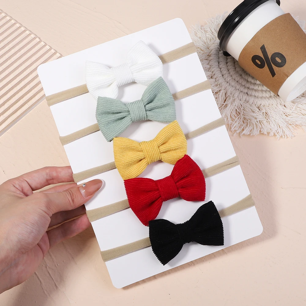 5Pcs/set Corduroy Bows Baby Headband For Girls Elastic Hair Bands Nylon Hairband Newborn Turban Headwear Kids Hair Accessories
