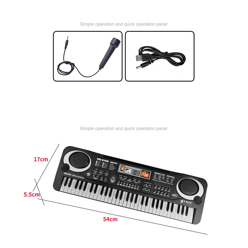 Description:61 Keys Electronic Piano Keyboard Kids For Organ with Microphone Education Toys Musical Instrument Gift
