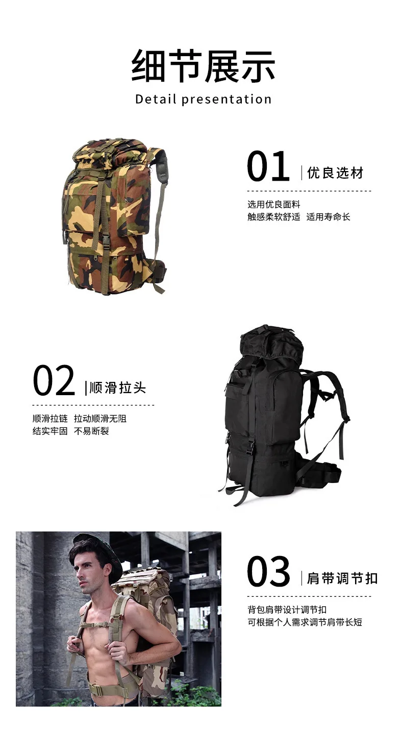 65L Outdoor Sports Backpack Camouflage Large Capacity Camping Rucksack Tactical Bags Waterproof Military Climbing Daypack