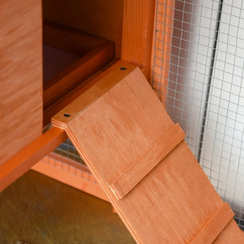 - INNOVATIVE DESIGN: The chicken enclosure has a ramp that connects the living room and outdoor run for easy access. A nesting box is included, and the roof can be easily opened to collect eggs.