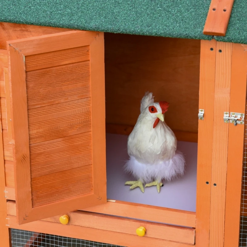 - A chicken nesting box is included and the roof can be easily opened to collect eggs
