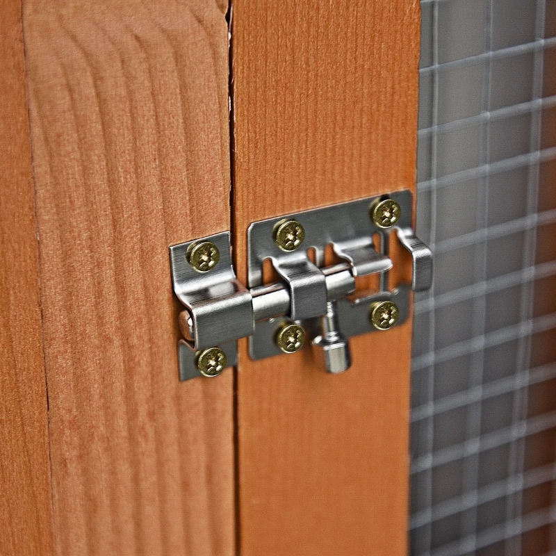 - Solid fir wood frame with an asphalt roof make this chicken cage suitable for outdoor use