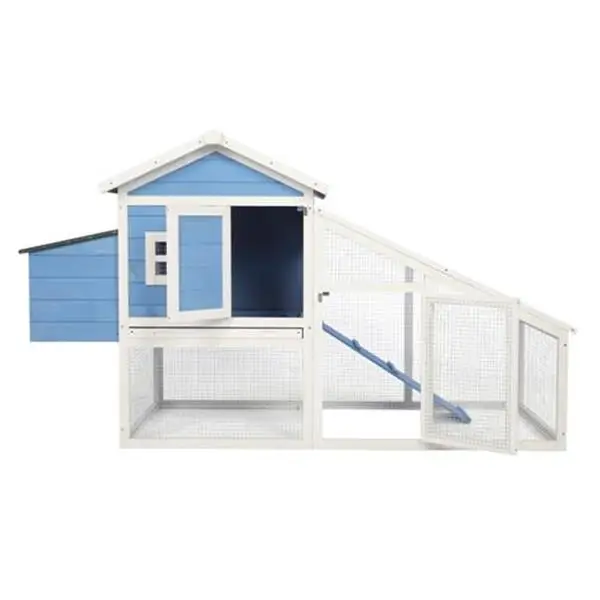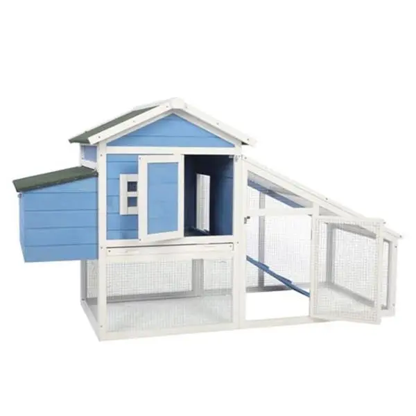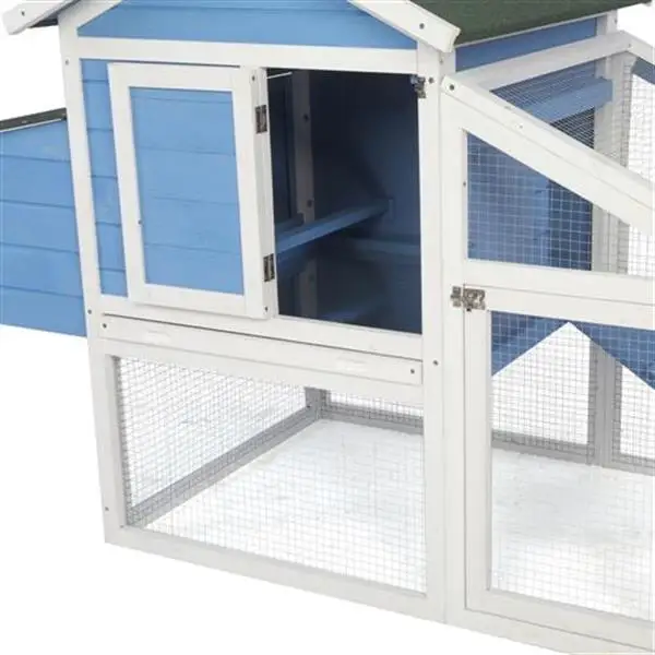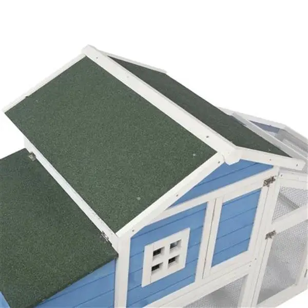 69 Inch Fir Wood Chicken Hutch Hen Coop Habitat Pigeon House with Egg Case & Tray & Running Cage Blue[US-Stock]