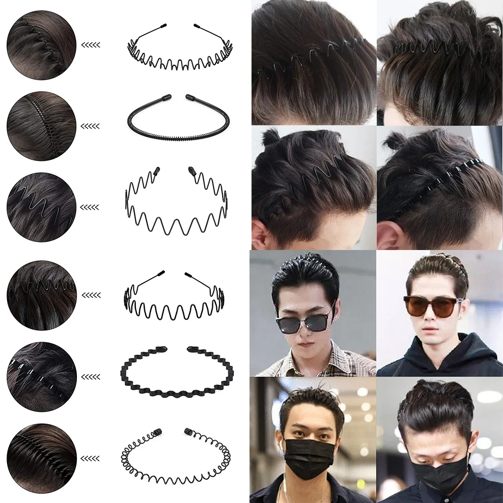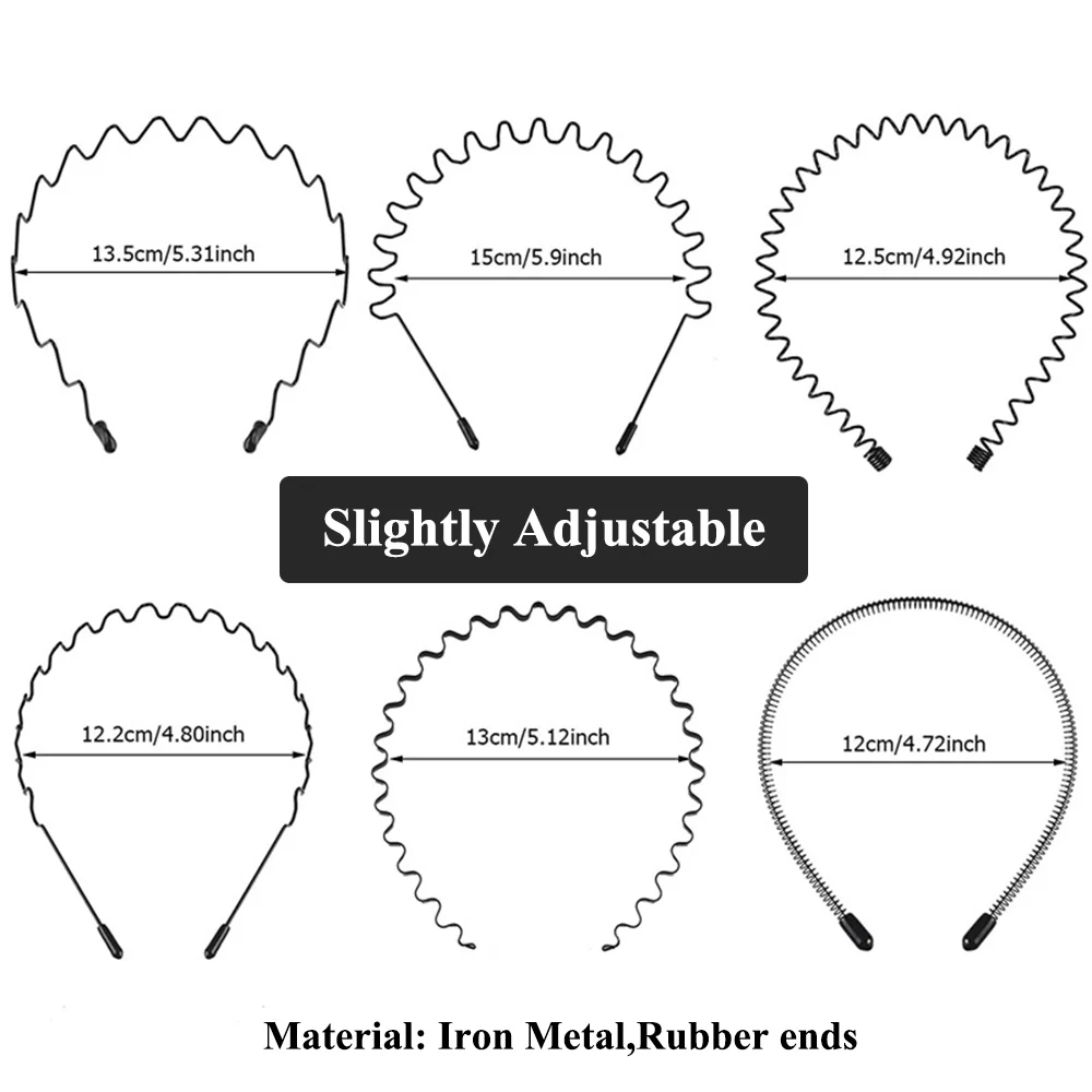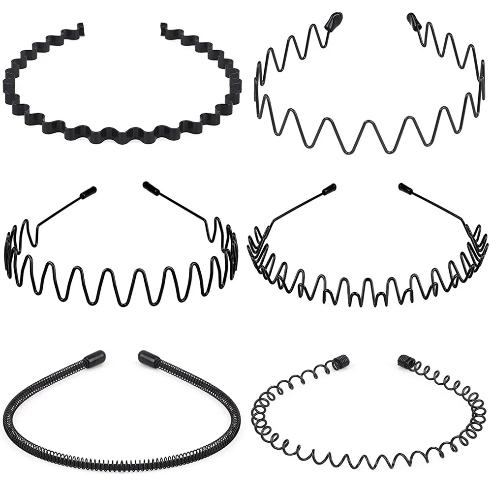 6PCS Invisible Black Iron Metal Headband for Women Men Unisex Long Hair Sport Face Washing Wave Hairband Hair Jewelry Accessory