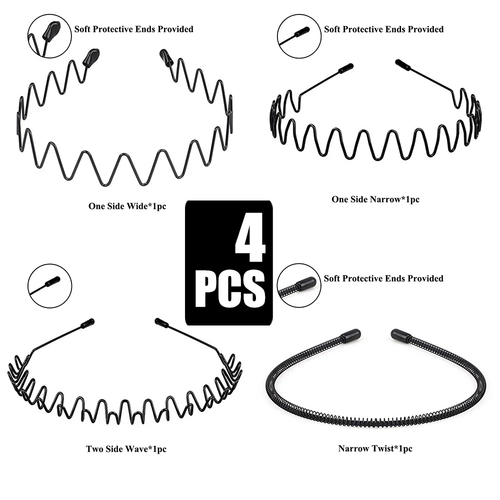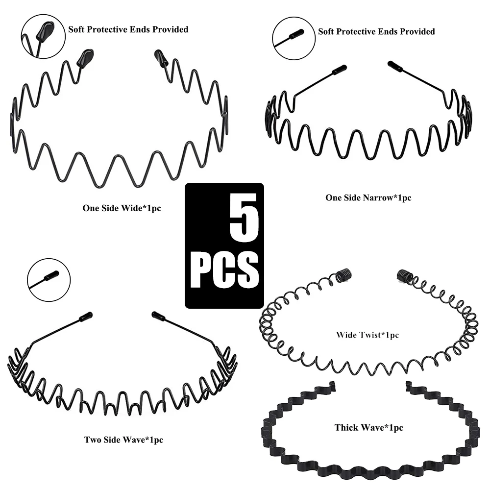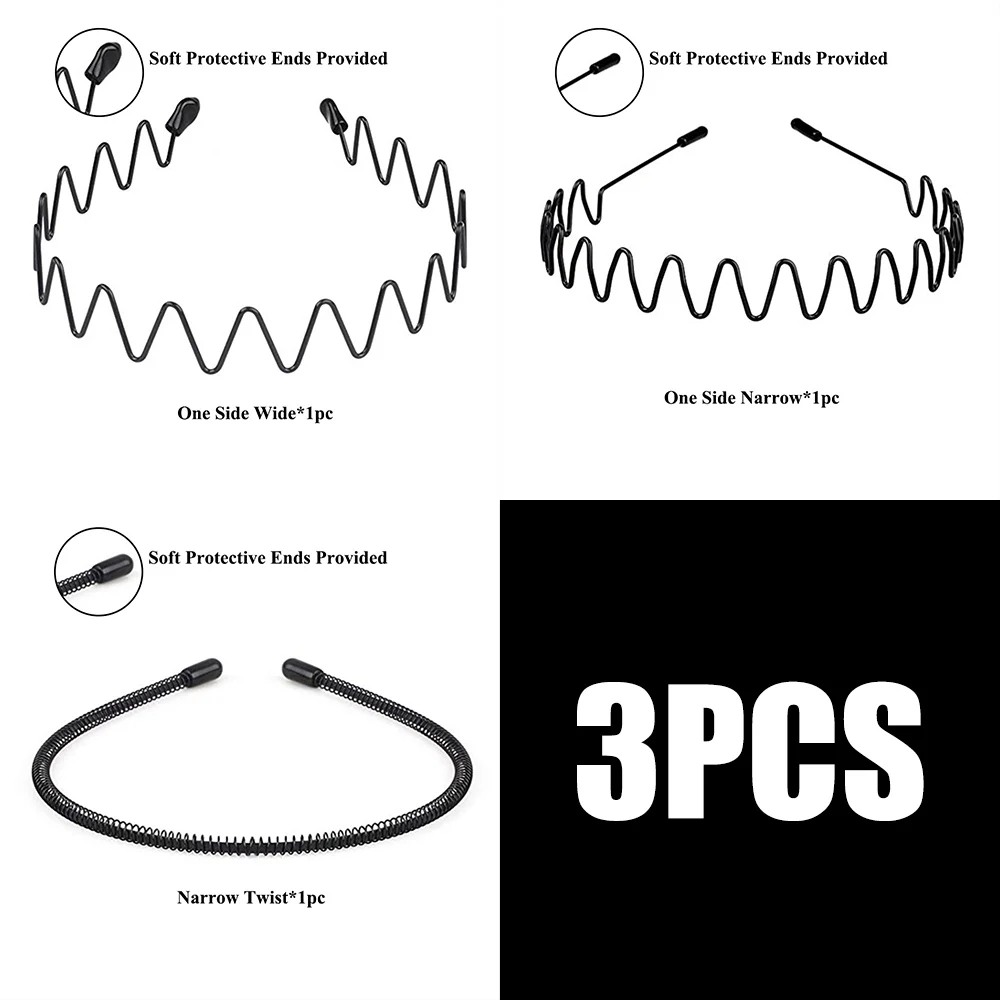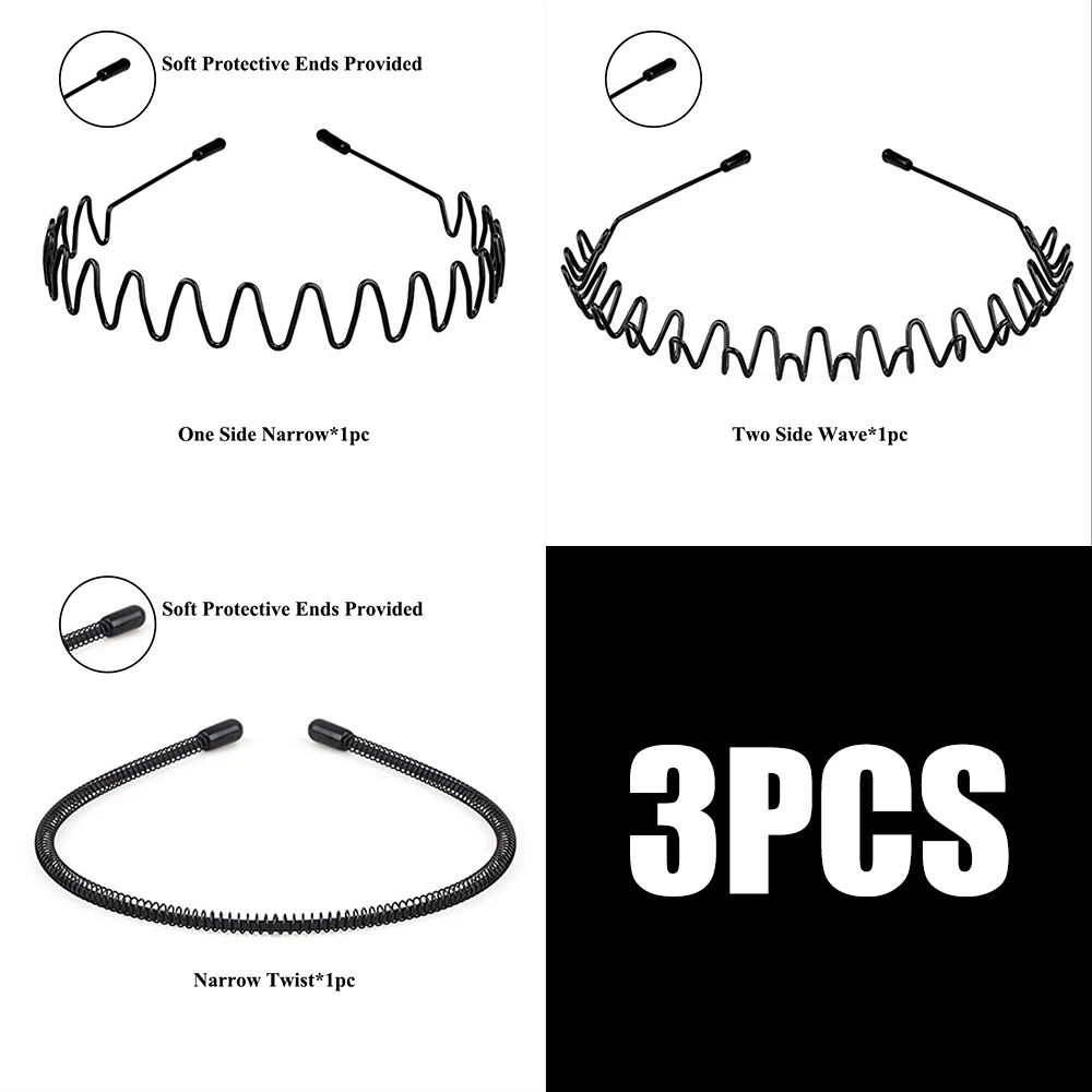 6PCS Invisible Black Iron Metal Headband for Women Men Unisex Long Hair Sport Face Washing Wave Hairband Hair Jewelry Accessory