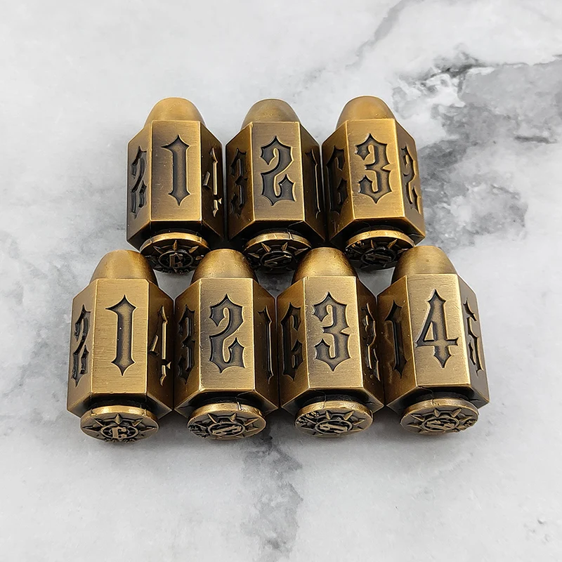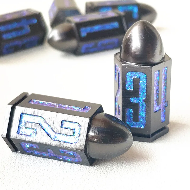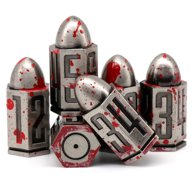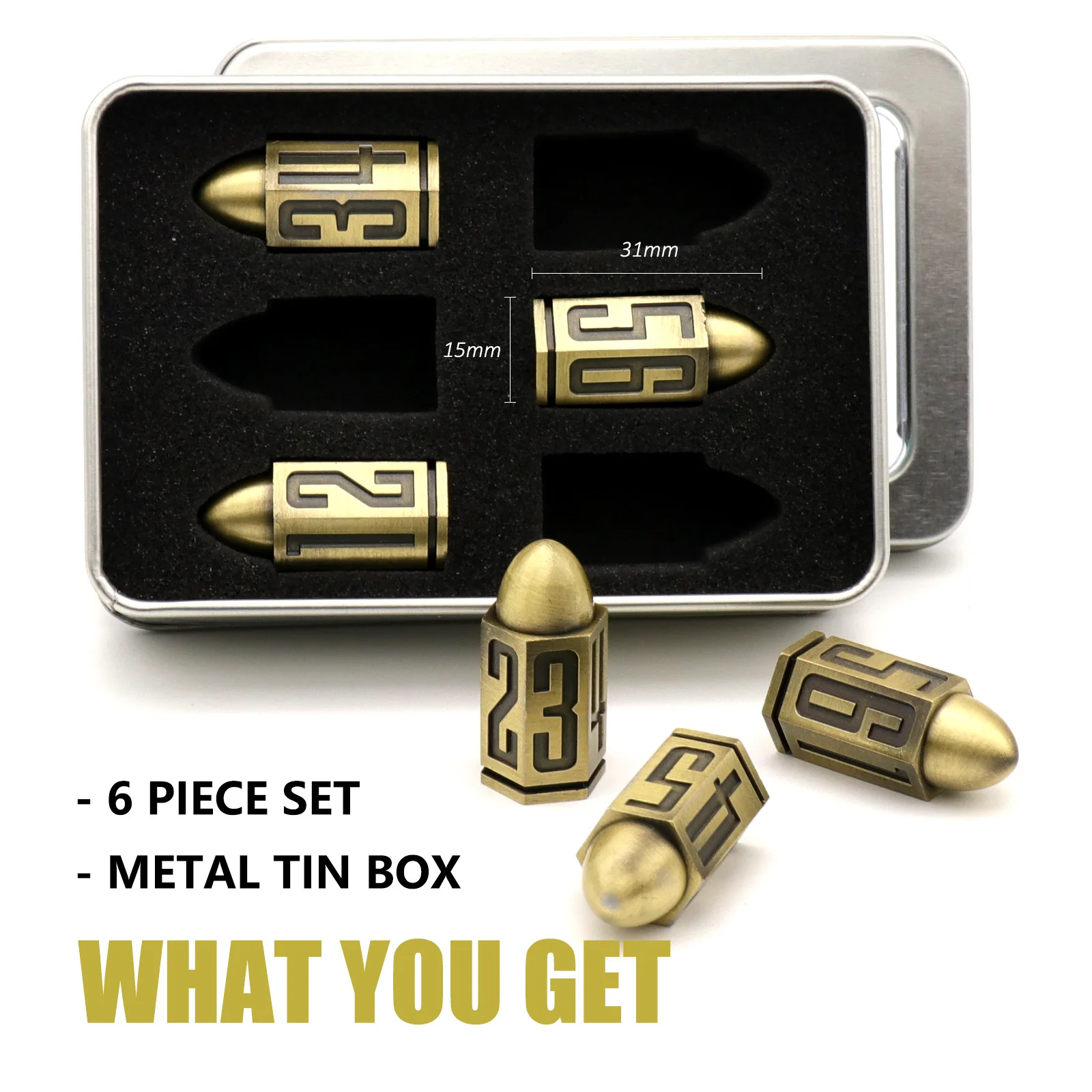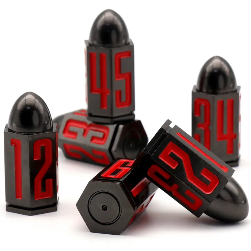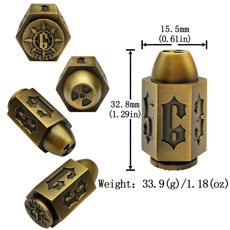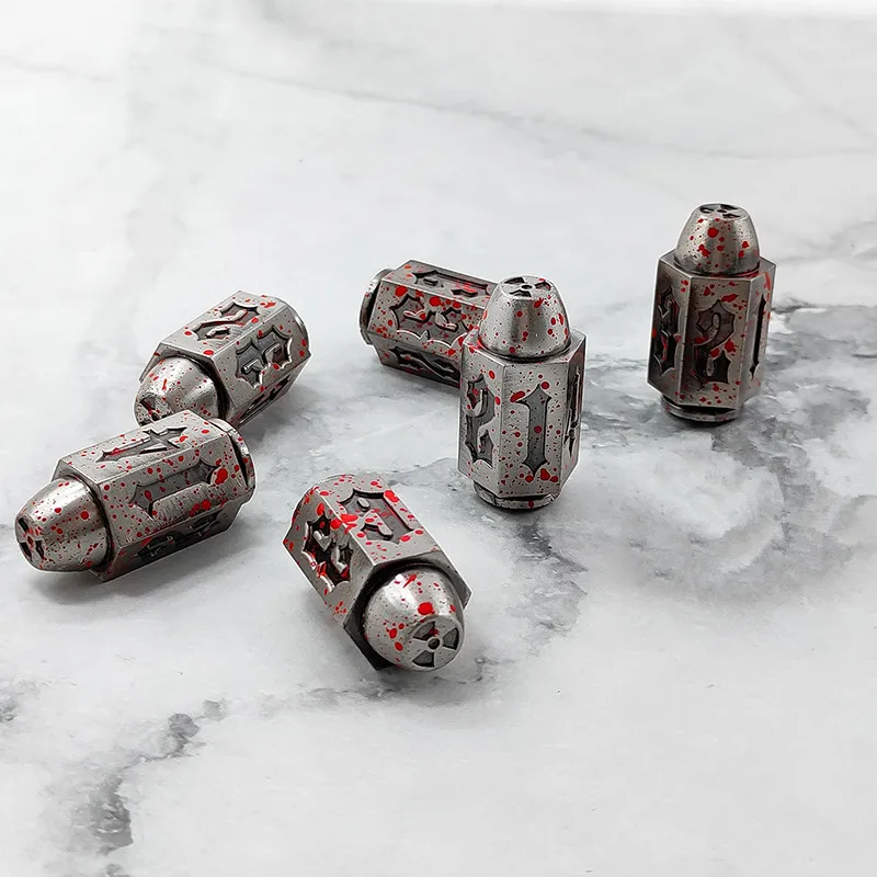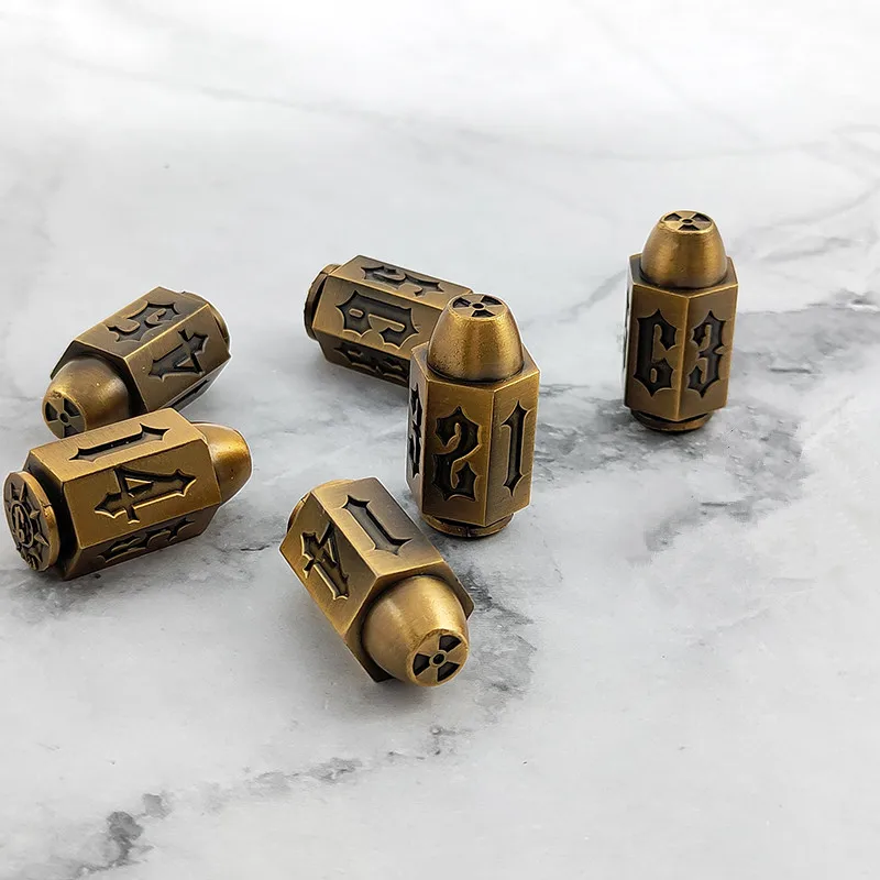 【D6 Bullet Dice 】:The dice don't need to look like dice, the 6-sided bullet dice are the perfect addition to any tabletop fight. They fit you dice palette perfectly and the rolling experience is quite visually fun.