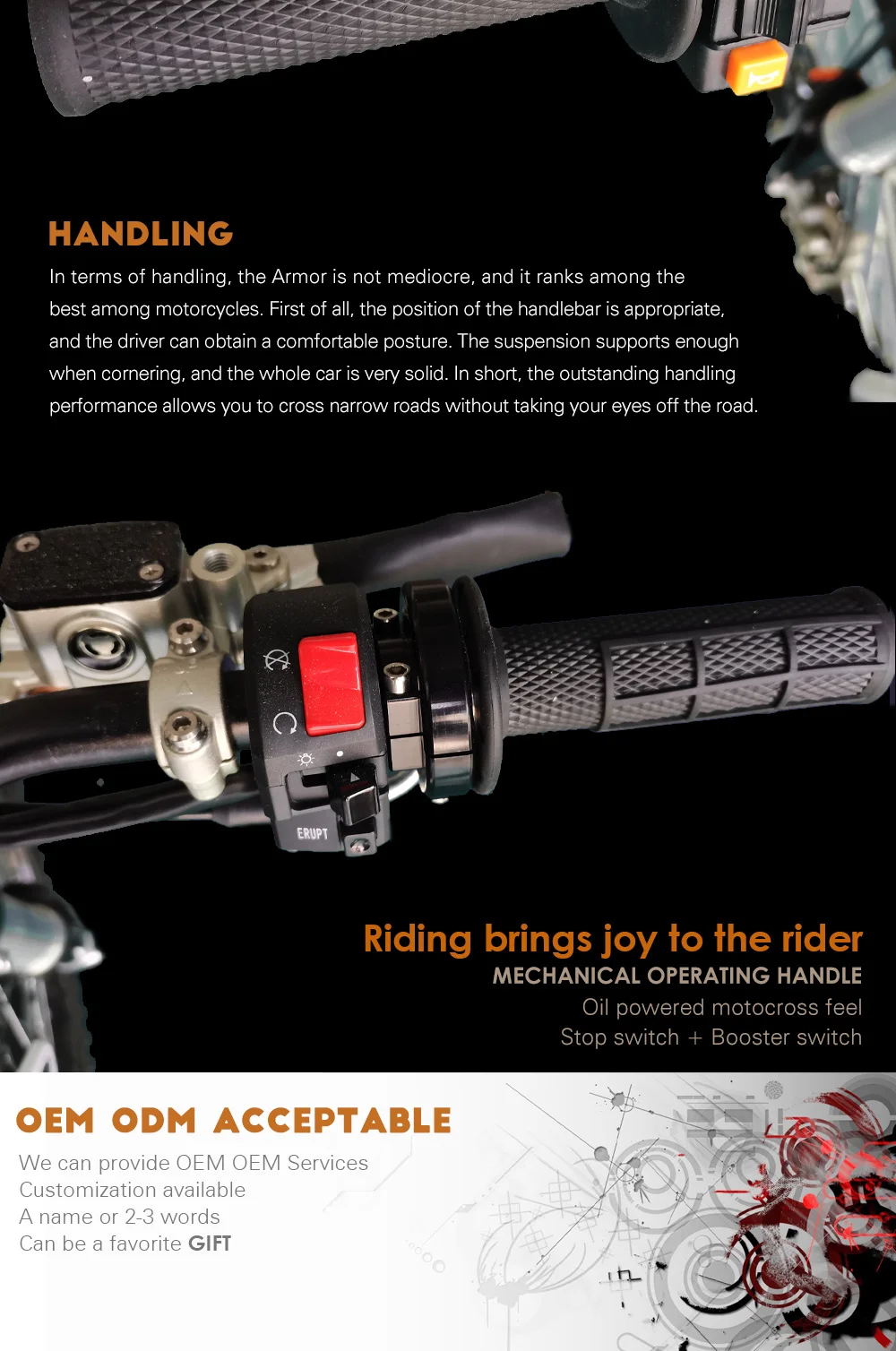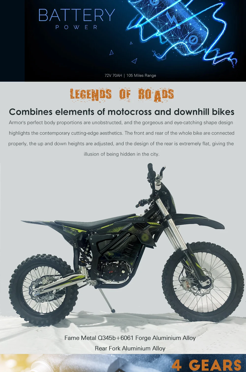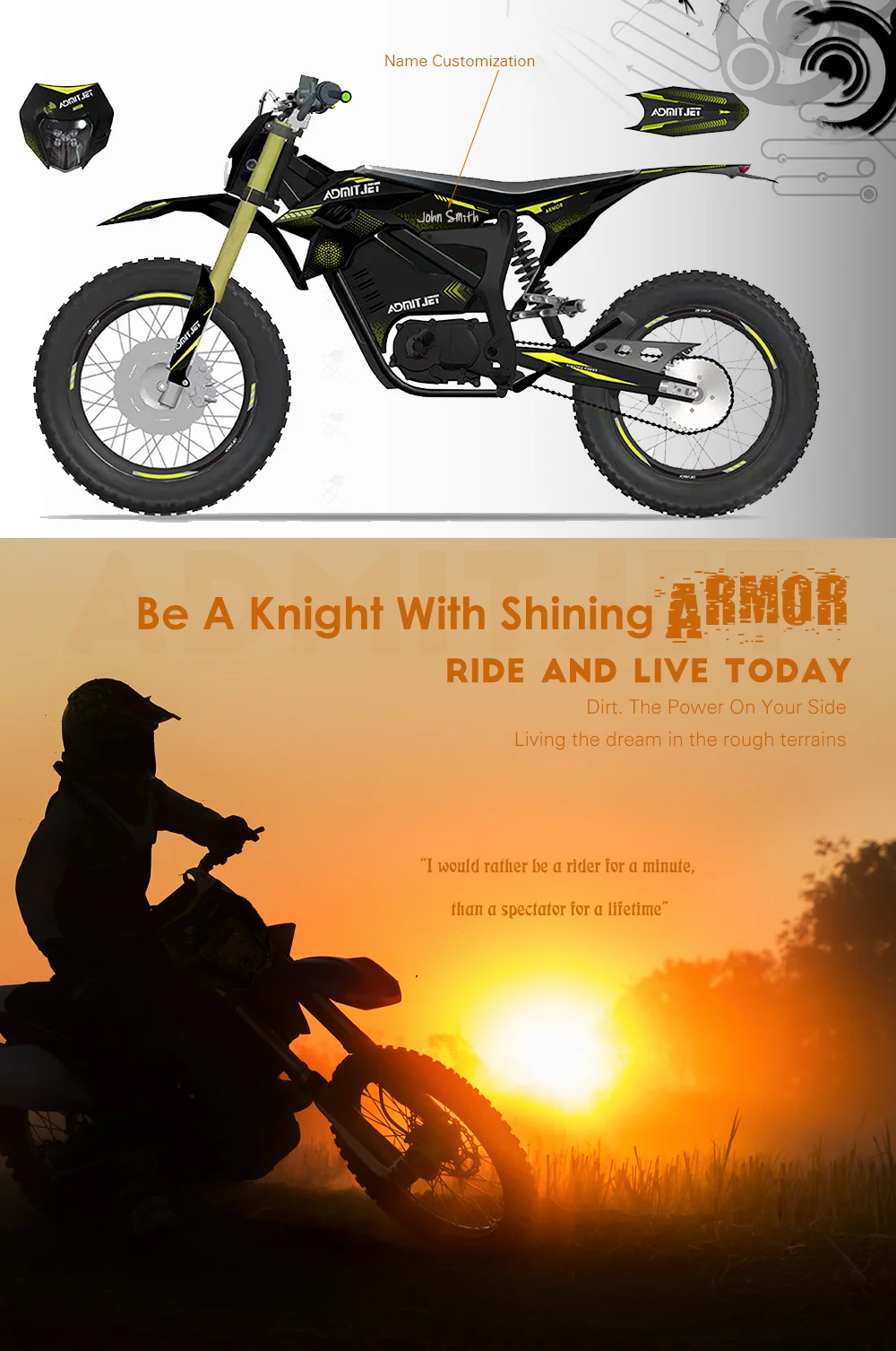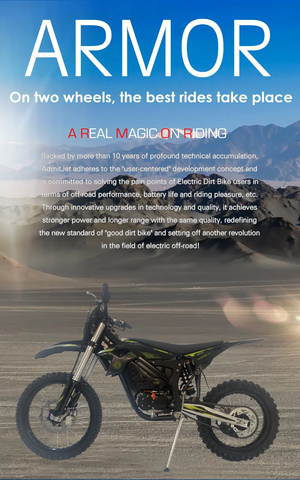 Made in China, The AdmitJet Armor Electric Motocross Motorcycle is a game-changer in the world of electric motorcycles, offering high performance and advanced features at an affordable price point. With its attractive design, powerful engine, and impressive range, the 2023 AdmitJet Armor is an excellent choice for riders looking for a reliable, high-performance electric motorcycle.