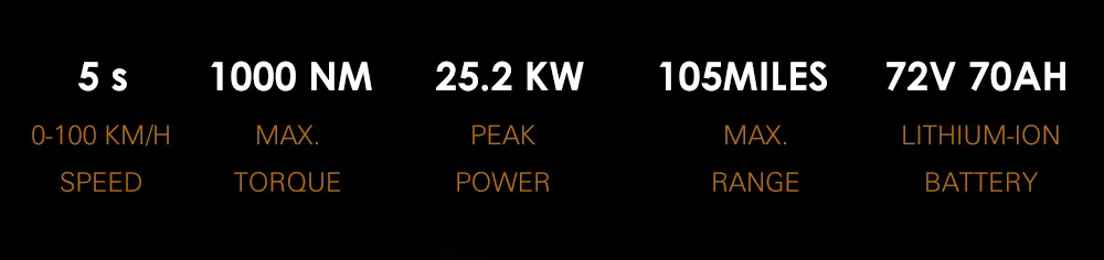 The Armor's electric motor delivers an impressive 3000W of related power, with a peak output of 20000W. This translates to a top speed of 130KM/H (85 MPH) and a 0-100KM/H time of just 5 seconds. The bike also features a lithium battery from CATL with a capacity of 72V and 70Ah, allowing for a range of up to 105 miles on a single charge. Charging time is quick, with a full charge taking just 1-6 hours using a 15Ah charger.