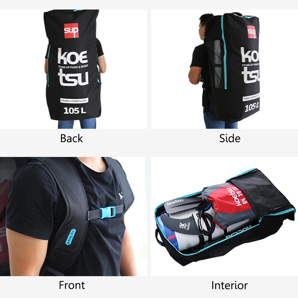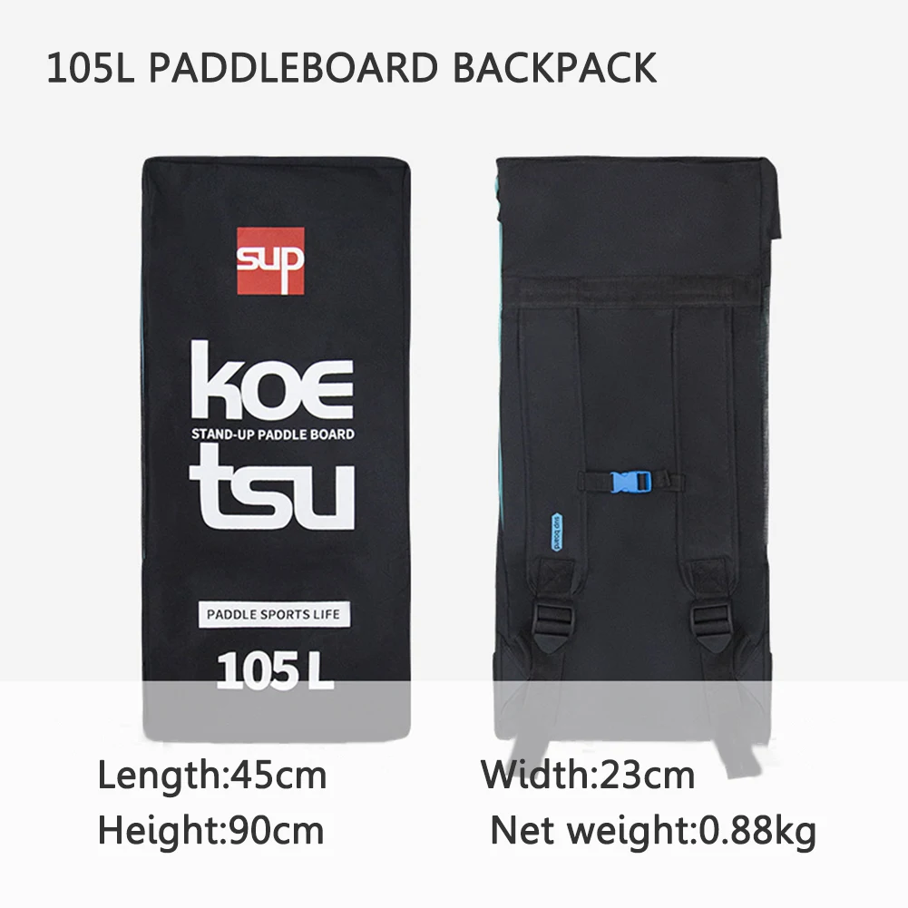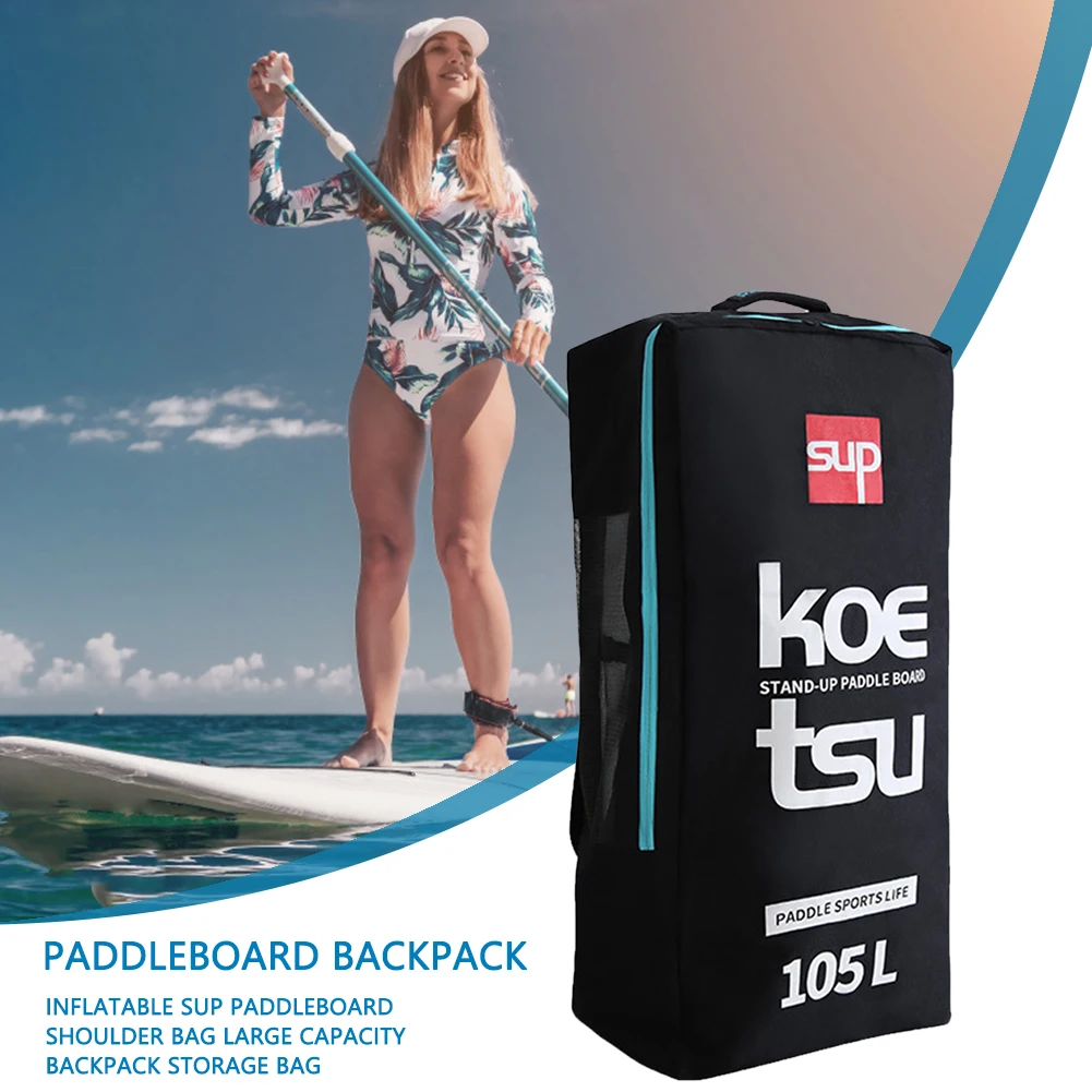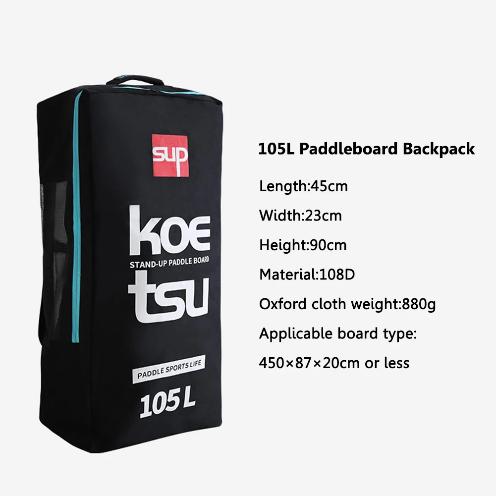 80L/105L Inflatable Paddle Backpack Oxford Portable Surfboard Backpack with Side Small Pocket Large Capacity Surfing Accessories