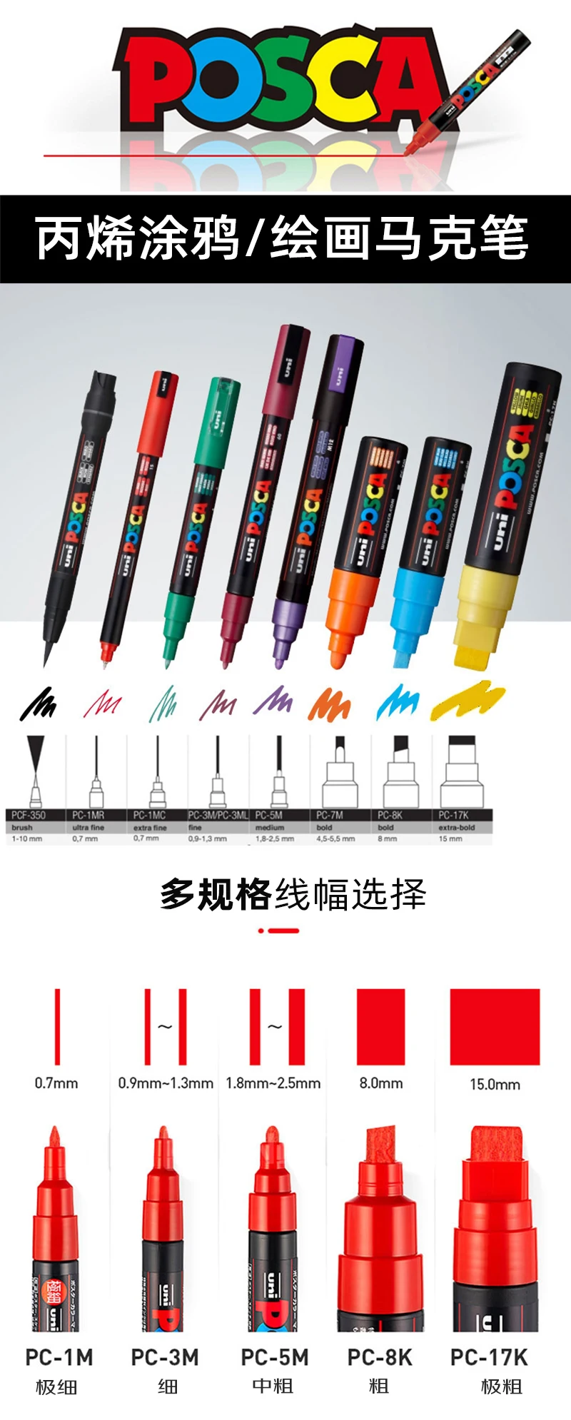 Choose Options Quick view 8pcs UNI POSCA Markers Set PC-17K Japan POP Poster Graffiti Pen 15mm Painting Water Based Big Head Pen Art Supplies $514.77 8pcs UNI POSCA Markers Set PC-17K Japan POP Poster Graffiti Pen 15mm Painting Water Based Big Head Pen Art Supplies Brand: UNI Origin: Japan Color: 8-color set Model: PC-17K Specification: 15mm...