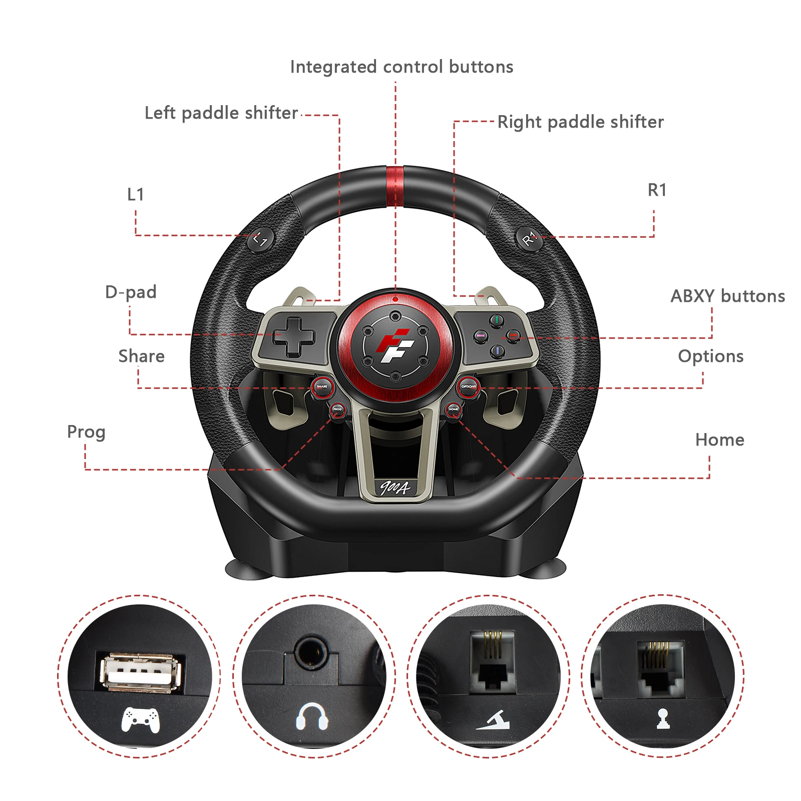 Suzukawheel900 6-in-1 Wired Vibration Steering Wheel is Specially Designed for Playstation3, Playstation4, Xbox360, Pc, Xboxone and Switch Platforms. It is Compatible with Various Racing Games and Can Be Generated According to Different Situations in the Game.different Vibration Effects (the Game Needs to Support Vibration). Shape According to Race Car the Steering Wheel Design is Ergonomic, and It is Not Easy to Be Tired After Long-term Operation, Which Makes the Game Control More Realistic and Increases the Operability and Fun.