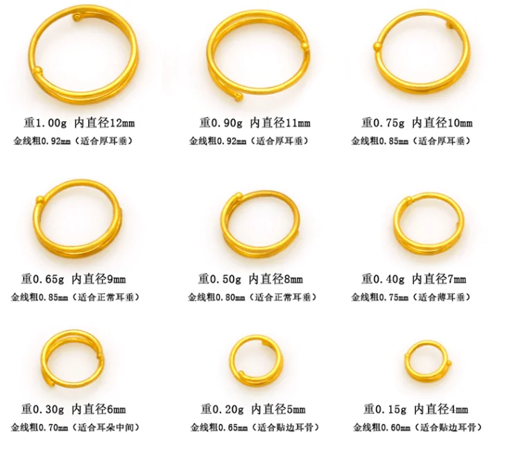 Add to Cart Quick view Solid 24K Yellow Gold Earrings Women 999 Gold Round Hoop Earrings P6287 $116.89 Size Chart