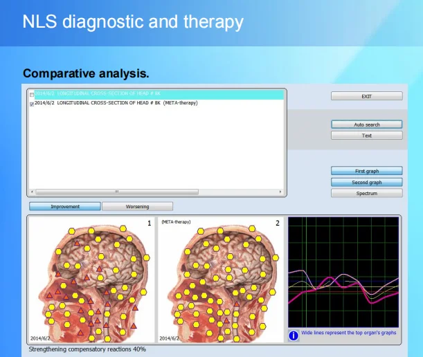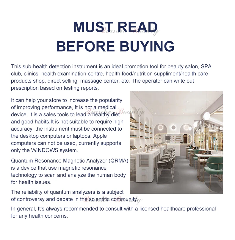 - Features:It can detect 12 systems, hundreds of organs, glands and cells throughout the body.Thousands of diseases can be predicted and 120,000 body lists ensure accurate testing. Prevent disease before it is too late.Users can see current and past health and cellular trends of their organs over the next three to five years. Support for XP,7,8,10 systems, support 32/64 bit systems.It can analyze food, health care products, etc., whether it is effective or damaged to human organs, to achieve a balanced life.With repair function, it has a good auxiliary effect on the early or unformed stage of the disease, especially for the repair of painful parts.9D NLS Specification:Item Type: Subhealth AnalyzerInstallation Instructions:1. Support for Win2K/XP / 2003 / Vista/Win7 (32 bits and 64 bits) / Win 8/Win102. Need more than 14 inch screen3. Need more than 2 gigabytes of hard disk space4.Support Language: English, Spanish,German, French, Italian9D NLS Program Function list:Vera-TestSpectrumDynamicObjectEtalonDscriptionEtalon-ObjectEntropy AnalysisNLS-AnalysisPrint reportComparative analysisMeta TherapyVegeto TestReprinterLocalize
