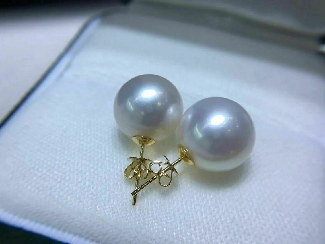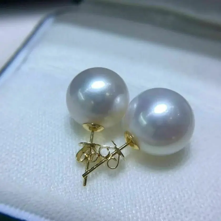 A large amount of AAAA 11-12mm natural round whit South China Sea pearl earrings