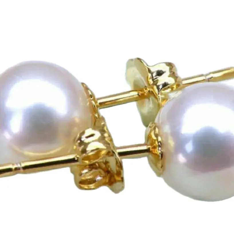 AAAA 7-8 mm Round Natural Akoya White Pearl Earring 14K Yellow Gold
