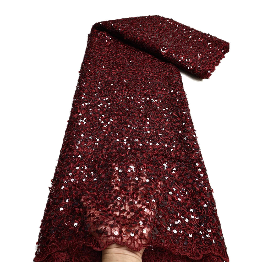 African Lace Fabric Pure Water Soluble Lace 2024 Latest Designed Guipure Lace With Sequins For High Quality Dress