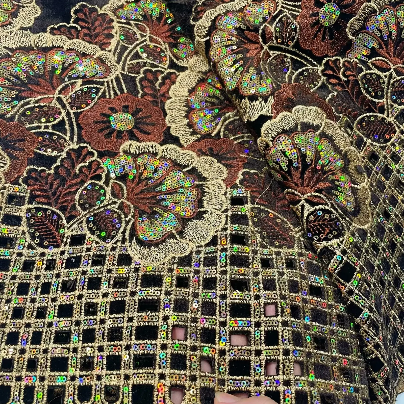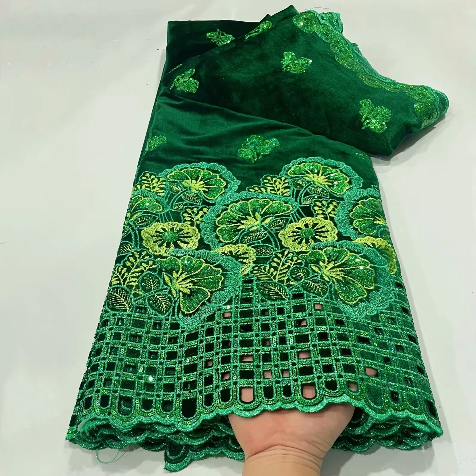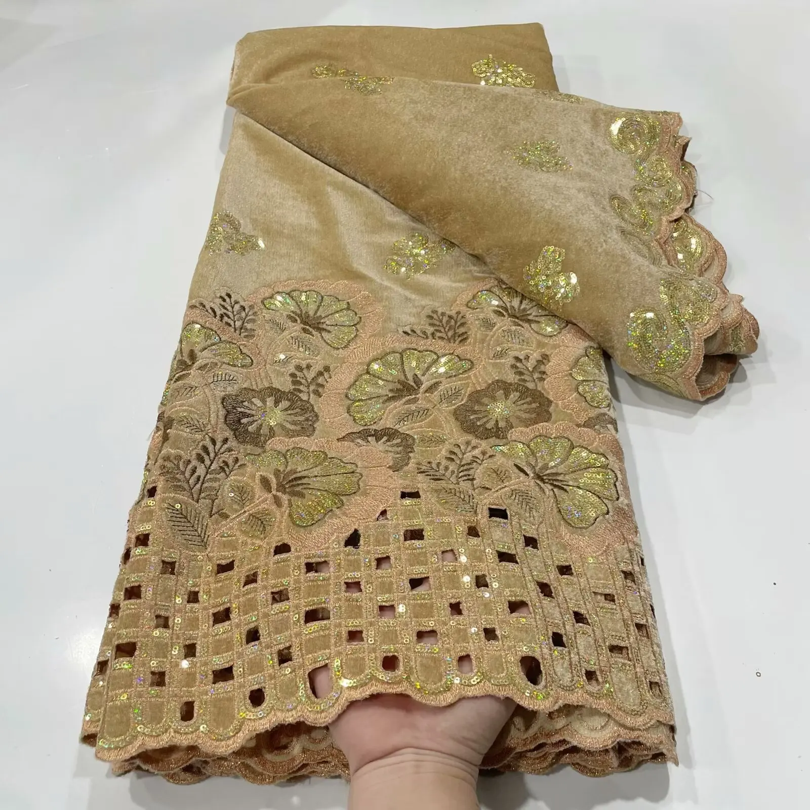 • African Velvet Sequins Lace Fabric 2024 High Quality Luxury Hand-cut Embroidery Gold French Net Lace For Wedding Party Dress