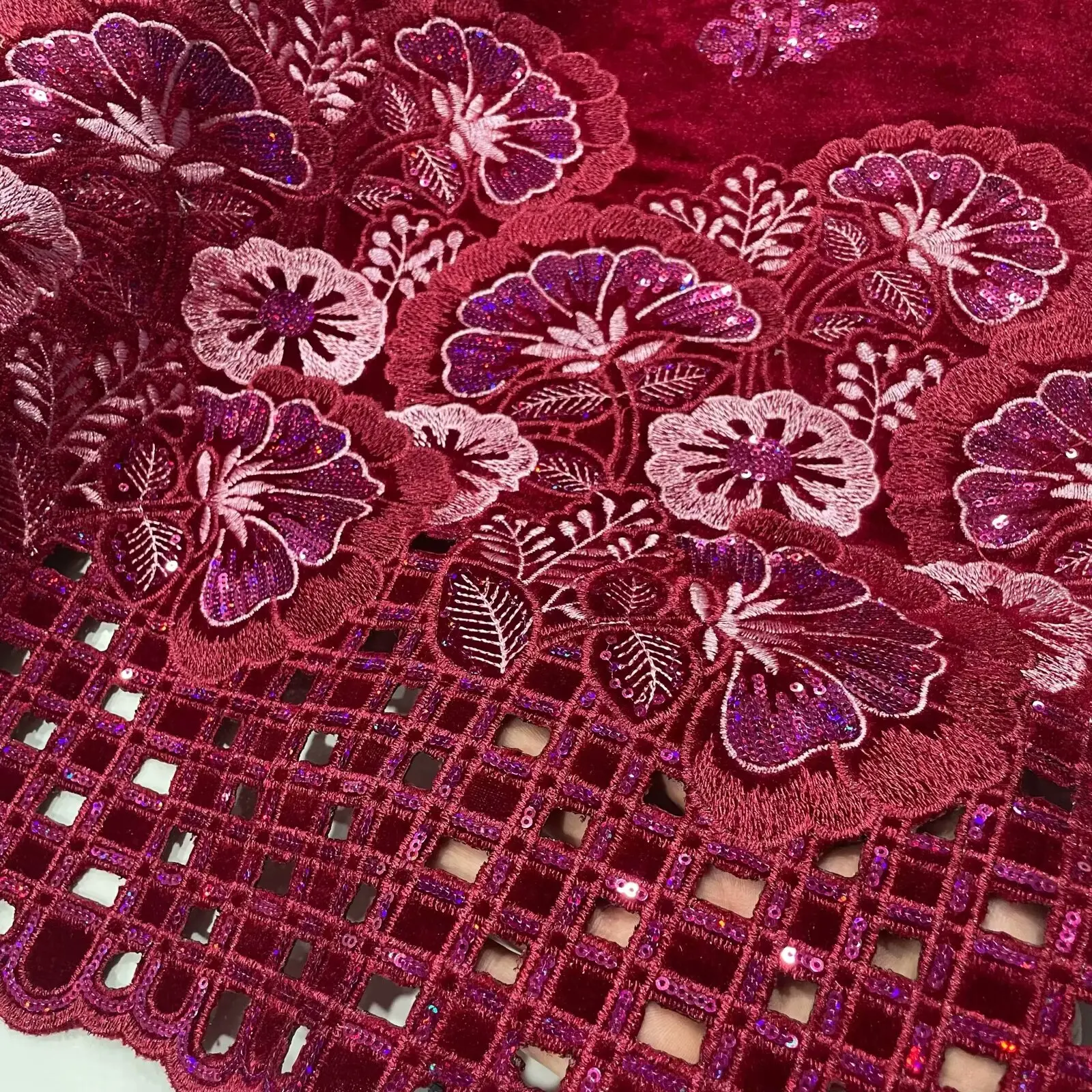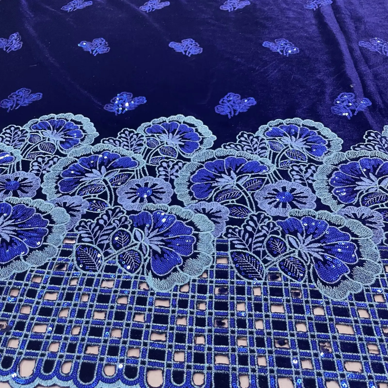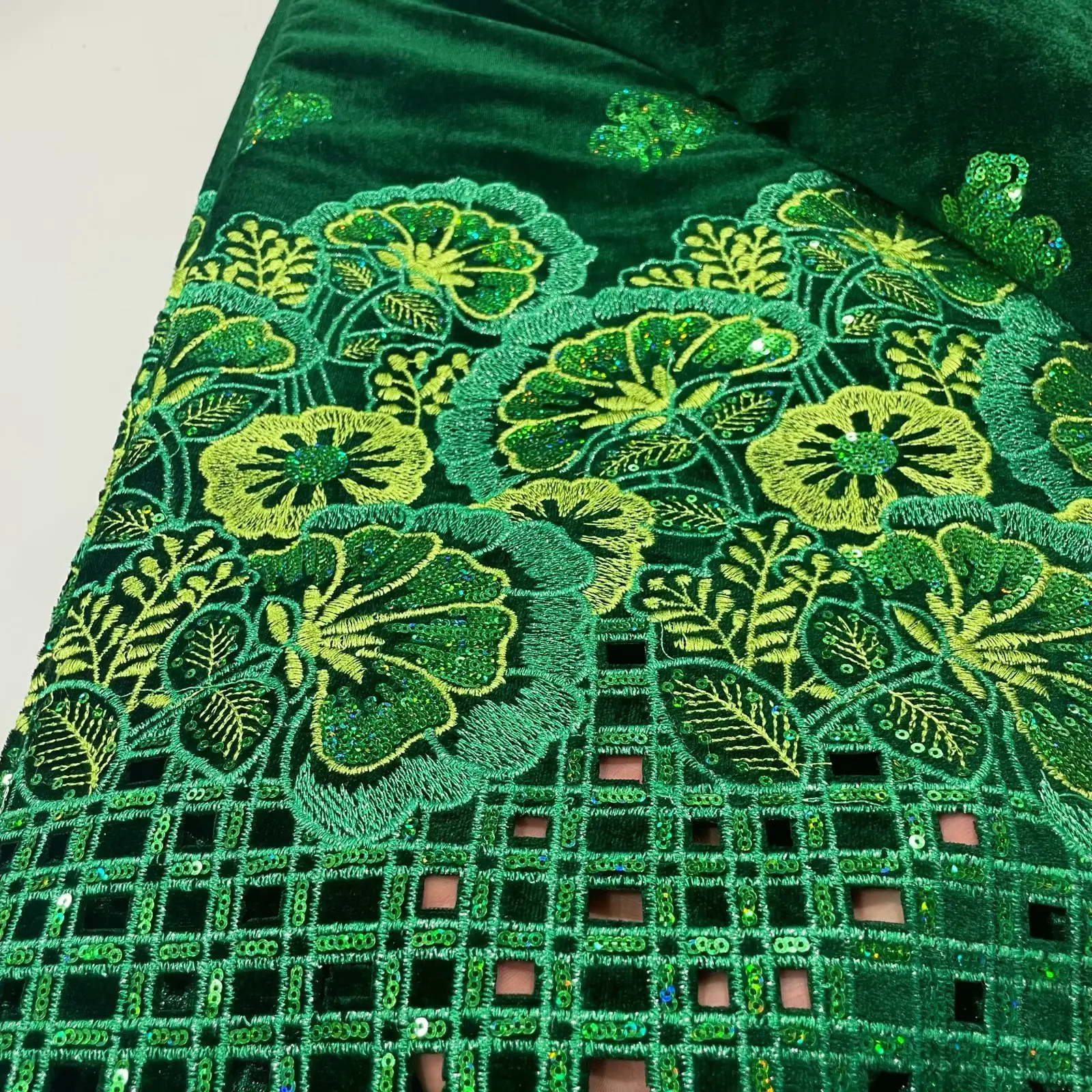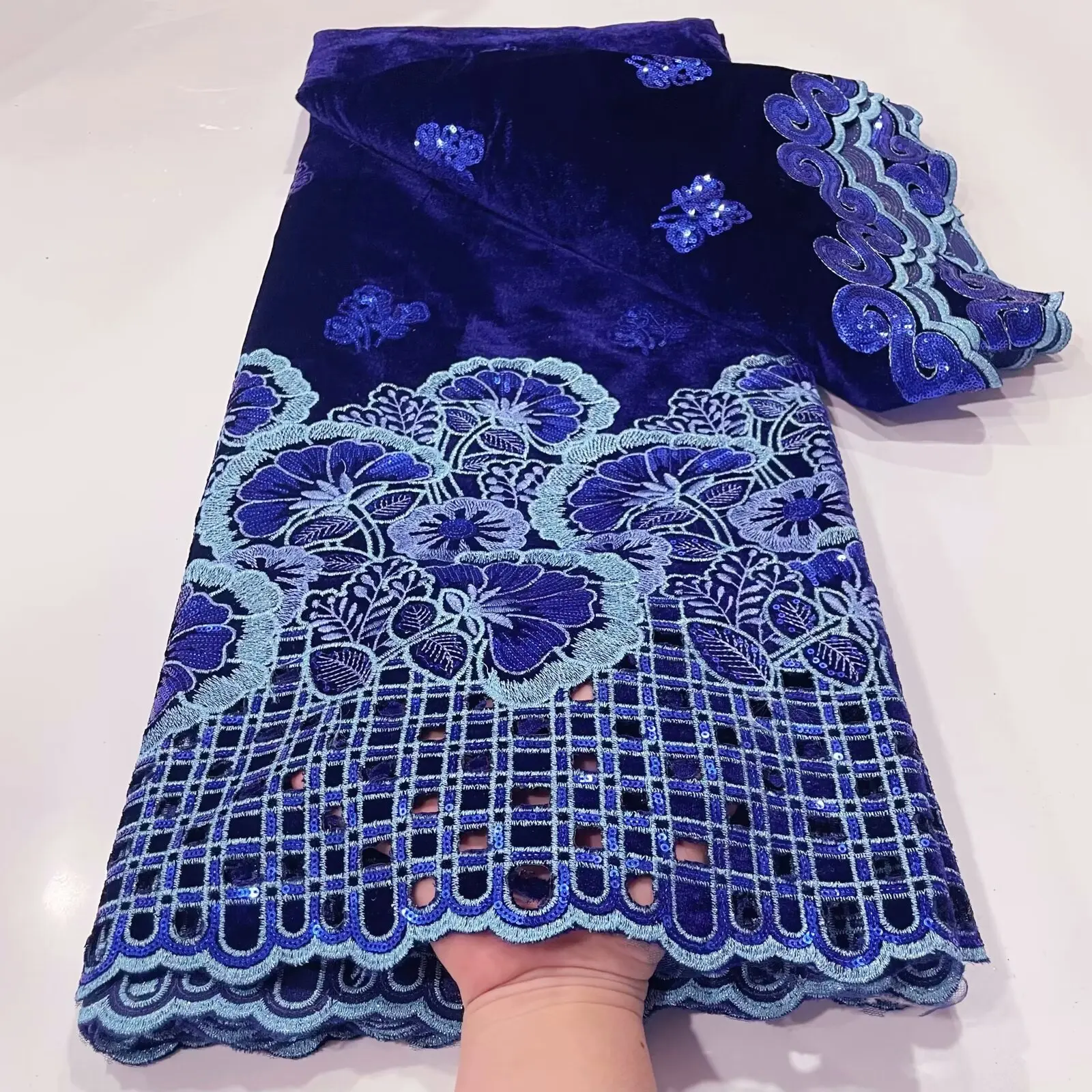 • African Velvet Sequins Lace Fabric 2024 High Quality Luxury Hand-cut Embroidery Gold French Net Lace For Wedding Party Dress