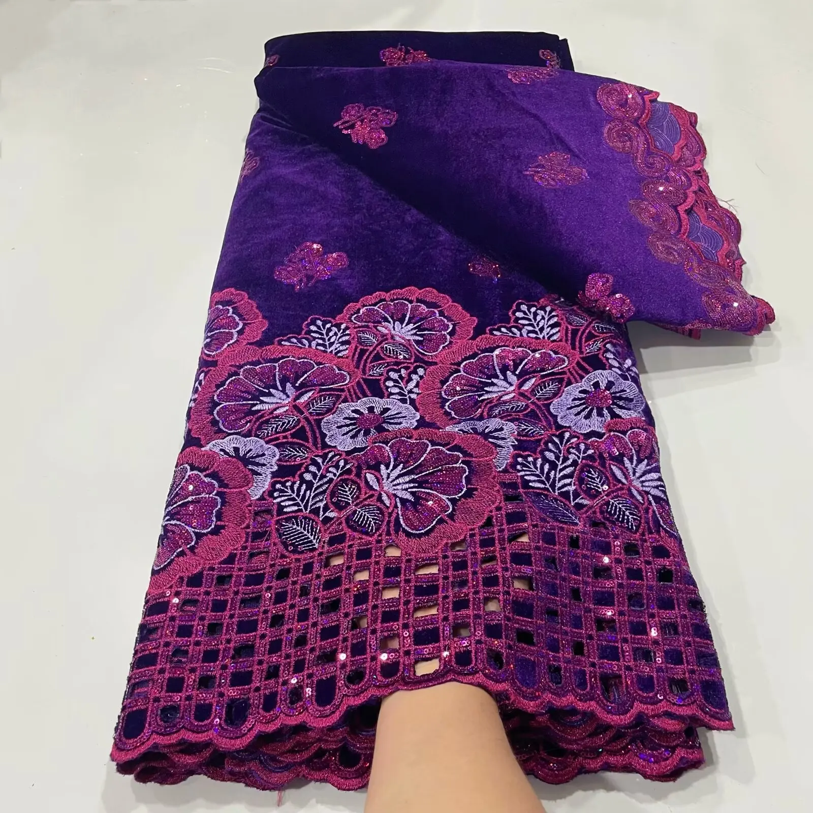 African Velvet Sequins Lace Fabric 2024 High Quality Luxury Hand-cut Embroidery Gold French Net Lace For Wedding Party Dress