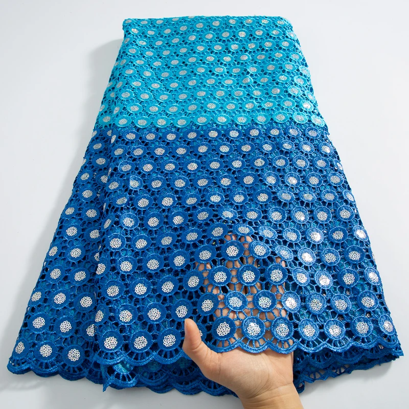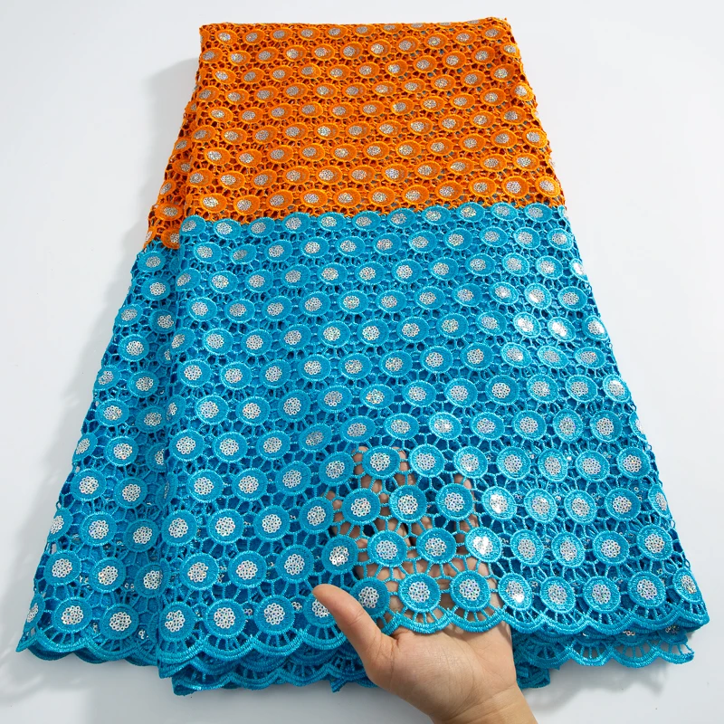 • African Water Soluble Lace Fabric High Quality Nigerian Guipure Cord Lace Fabric With Sequins for Women Dress Sew Material A3709