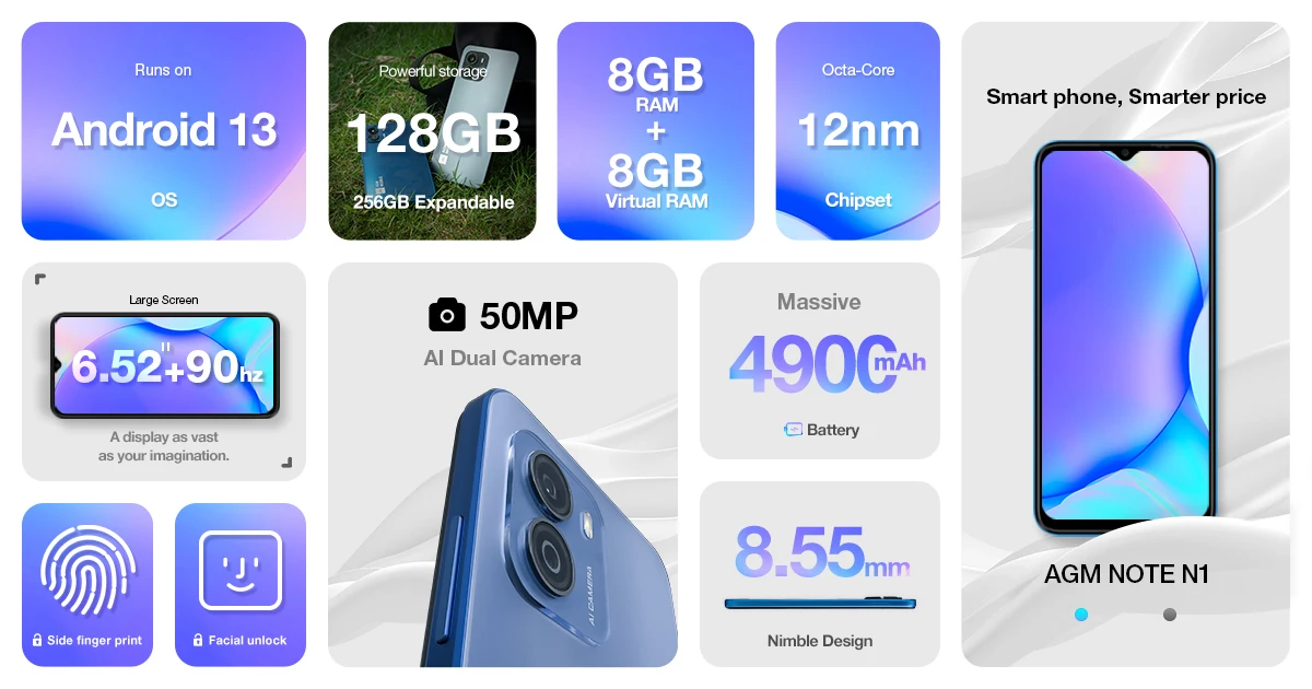 Choose Options Quick view AGM NOTE N1 Smartphone 8GB RAM 128GB ROM 6.583 Inch HD+ Screen50MP Android 13 4900mAh 2 SIM Card Celular $149.98