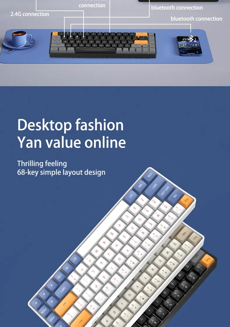 7. Layout: 68 keys, compact layout design, greatly saving the use of space.
