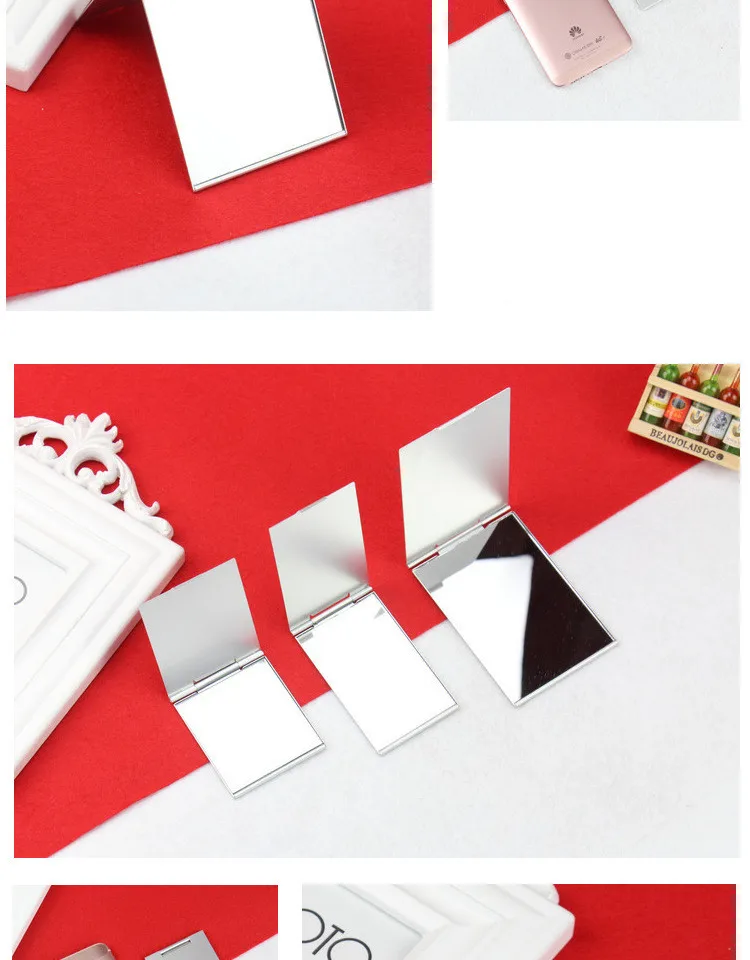 Mini Portable Light Makeup Mirror Square Hand Standing Small Cute Kawaii Mirror Vanity Foldable Compact Pocket Cosmetics Tools