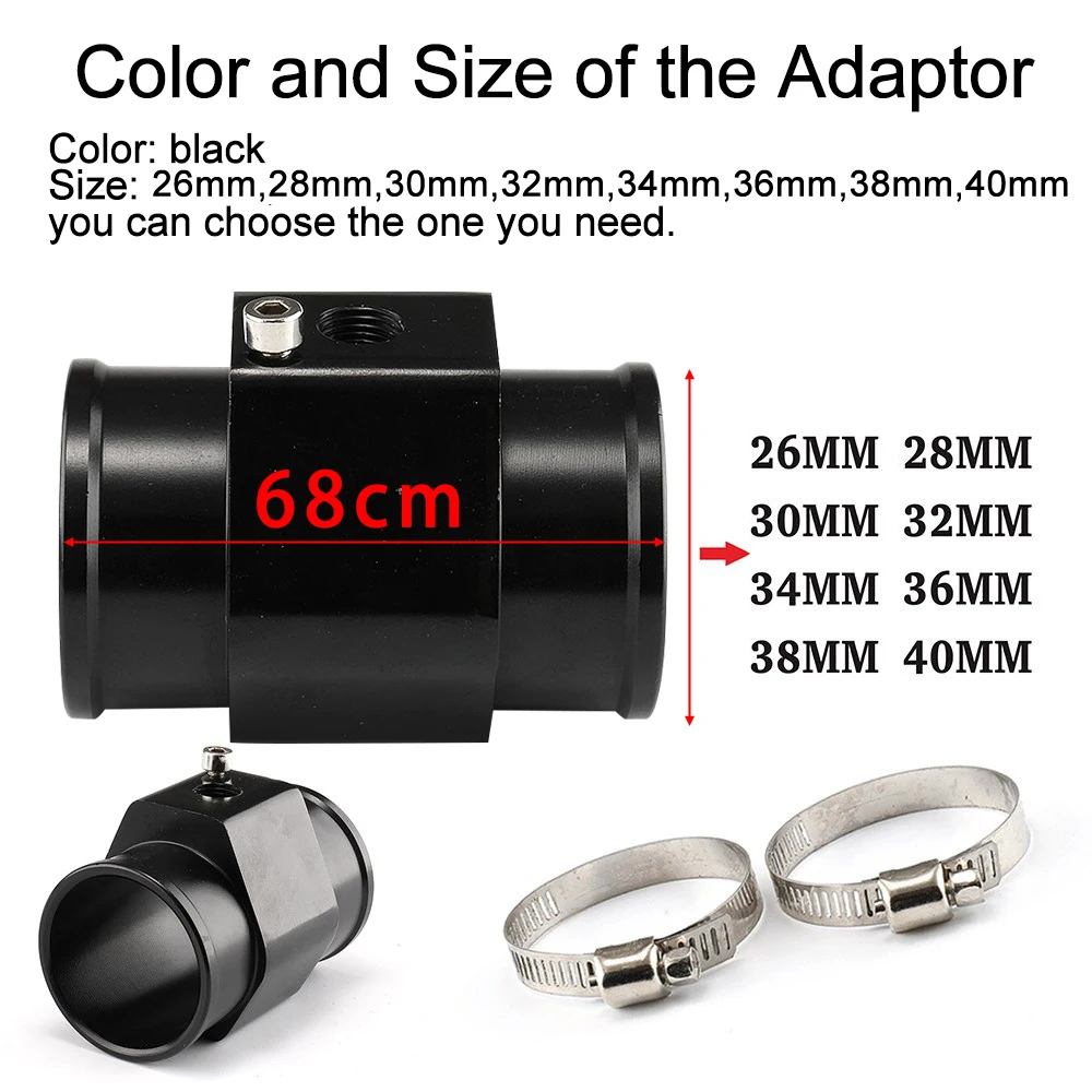 Aluminum Water Temp Gauge Radiator Temperature 26mm/28mm/30mm/32mm/34mm/36mm/38mm/40mm Water Temp Joint Pipe Sensor Hose Adapter