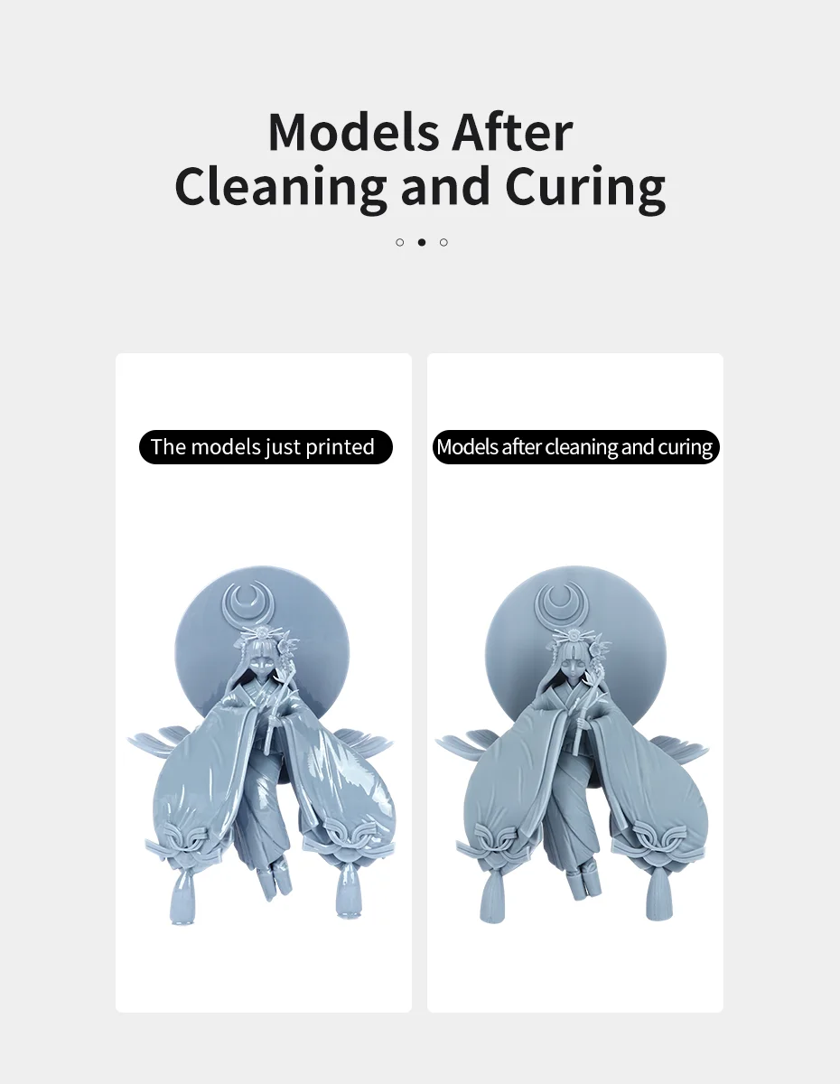 The adoption of two brand-new modes of spray rinsing and detail dipping ensures efficient and thorough cleaning. Powerful mechanical injection eliminates residual resin on the print surface, while the bottom dipping rinse effectively removes resin from intricate details.