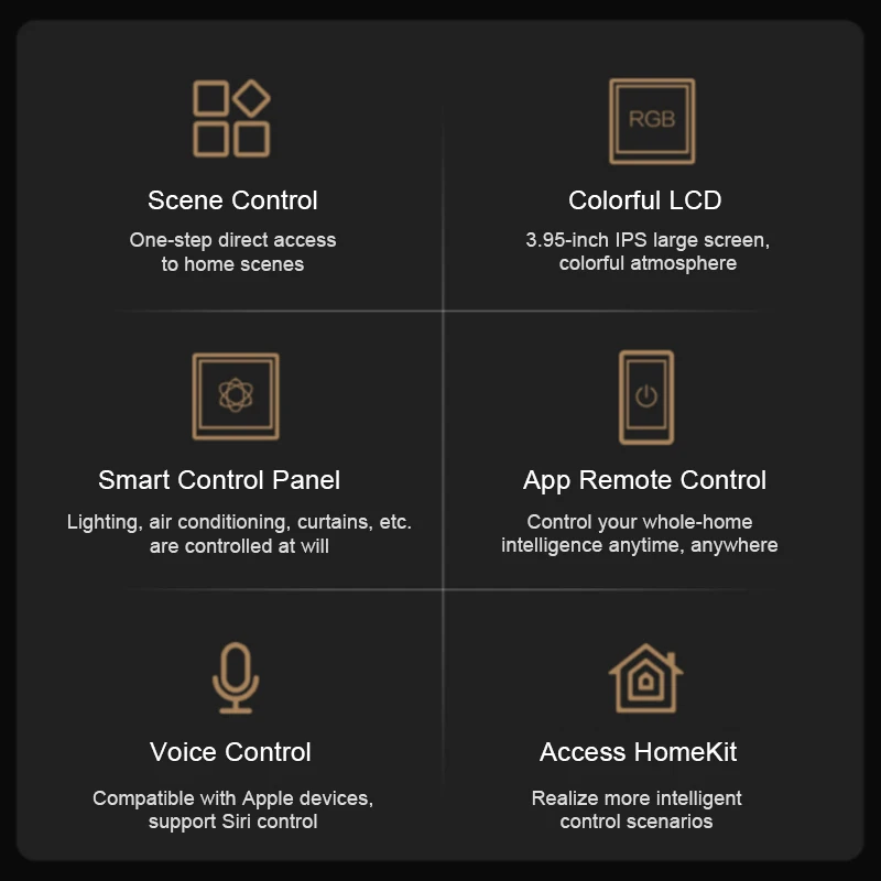 Aqara S1 Zigbee 3.0 Smart Scene Wall Switch Temperature LCD Lamp Center Control Panel work for Homekit, Aqara Home APP