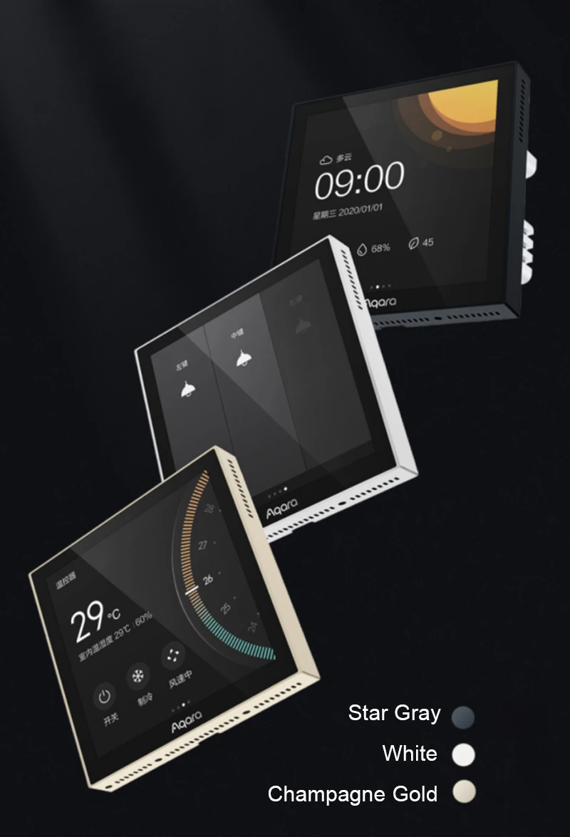 * Display date and time, weather, air quality, temperature and other information, support control of airconditioning, lights and curtains.